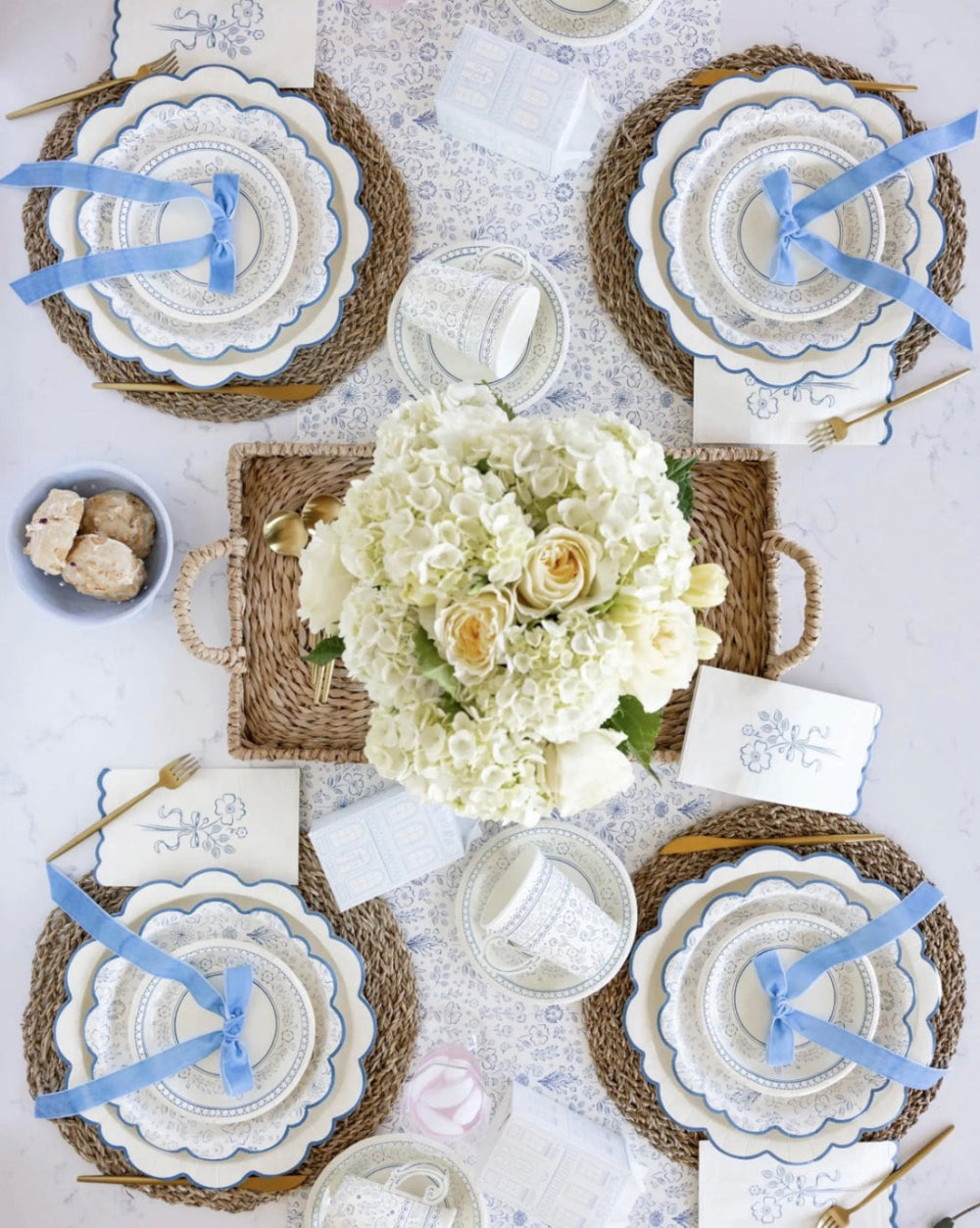 Celebrate in style with blue floral party supplies featuring delicate toile patterns, dainty bows, and a coquette-inspired charm.