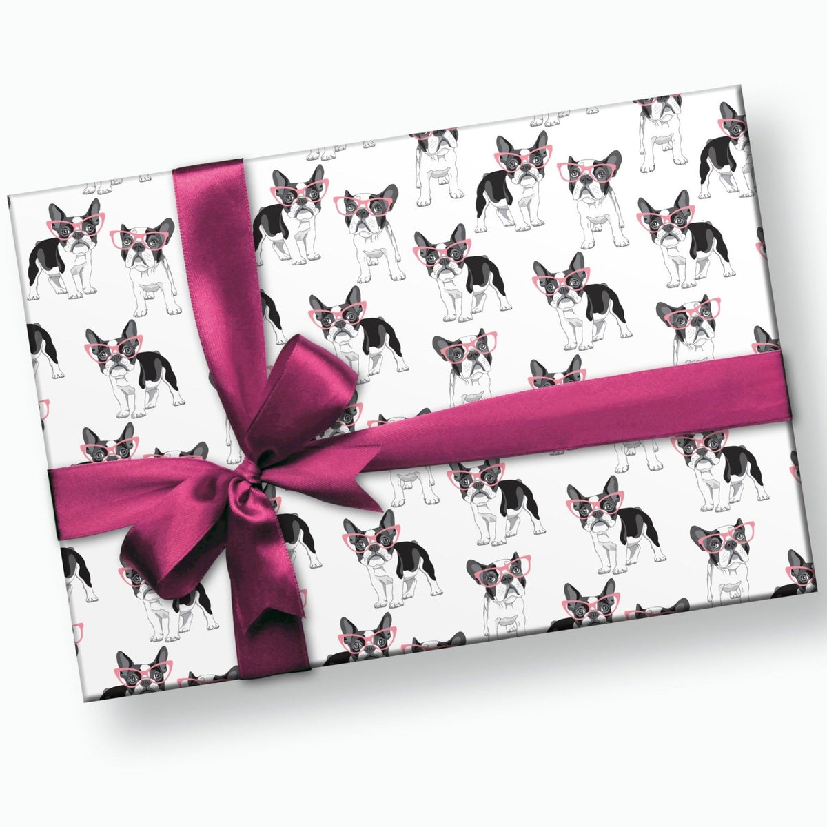 This playful wrapping paper features adorable Frenchie bulldogs sporting stylish pink glasses, adding a fun and fashionable touch to any gift. Perfect for dog lovers, fashion-forward friends, or anyone who enjoys a dose of cute and quirky charm. Whether for a birthday, holiday, special occasion, or just because, this design brings a delightful mix of fun and flair to every present!
