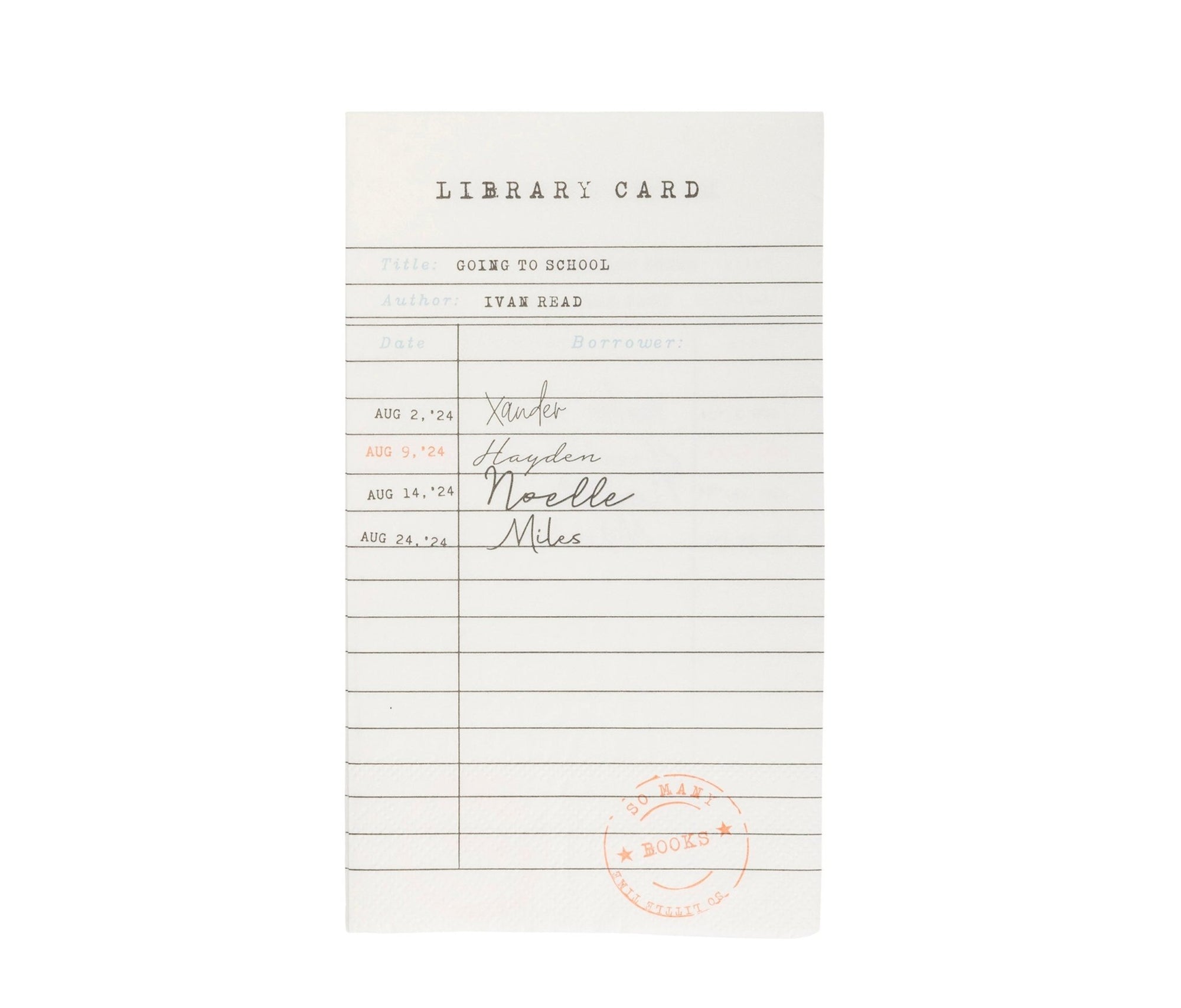 Add a literary touch to your event with our unique library card napkins! These charming napkins are designed to resemble vintage library cards, perfect for book-themed parties, literary events, school birthdays, or any celebration where a love of reading is front and center. Made from high-quality, absorbent paper, these napkins not only bring a nostalgic flair to your table setting but also handle spills with ease. Delight your guests with these creative and functional napkins that pay homage to the timeless joy of reading and the beauty of libraries. Ideal for book clubs, author events, or any gathering of book lovers!
