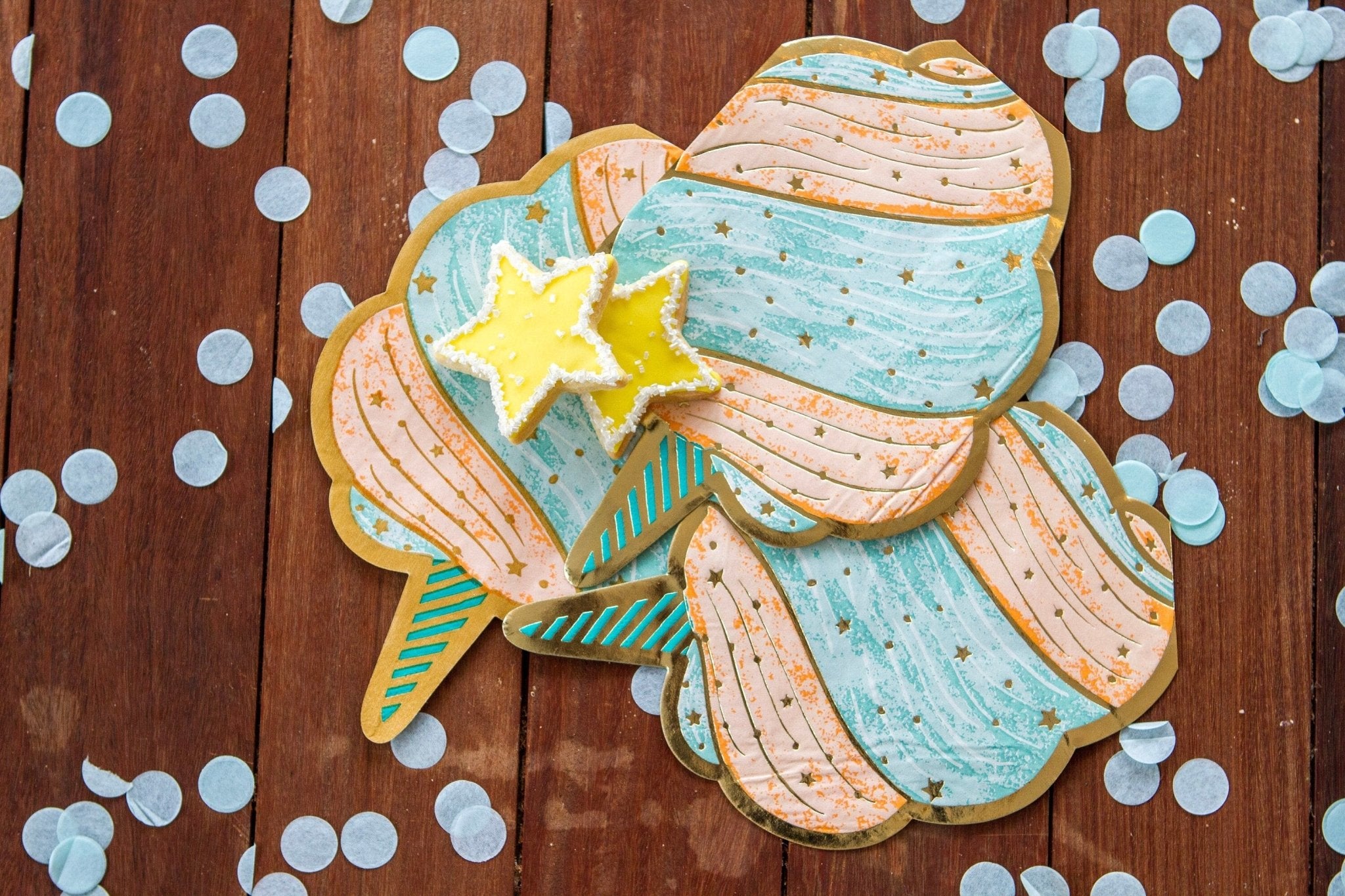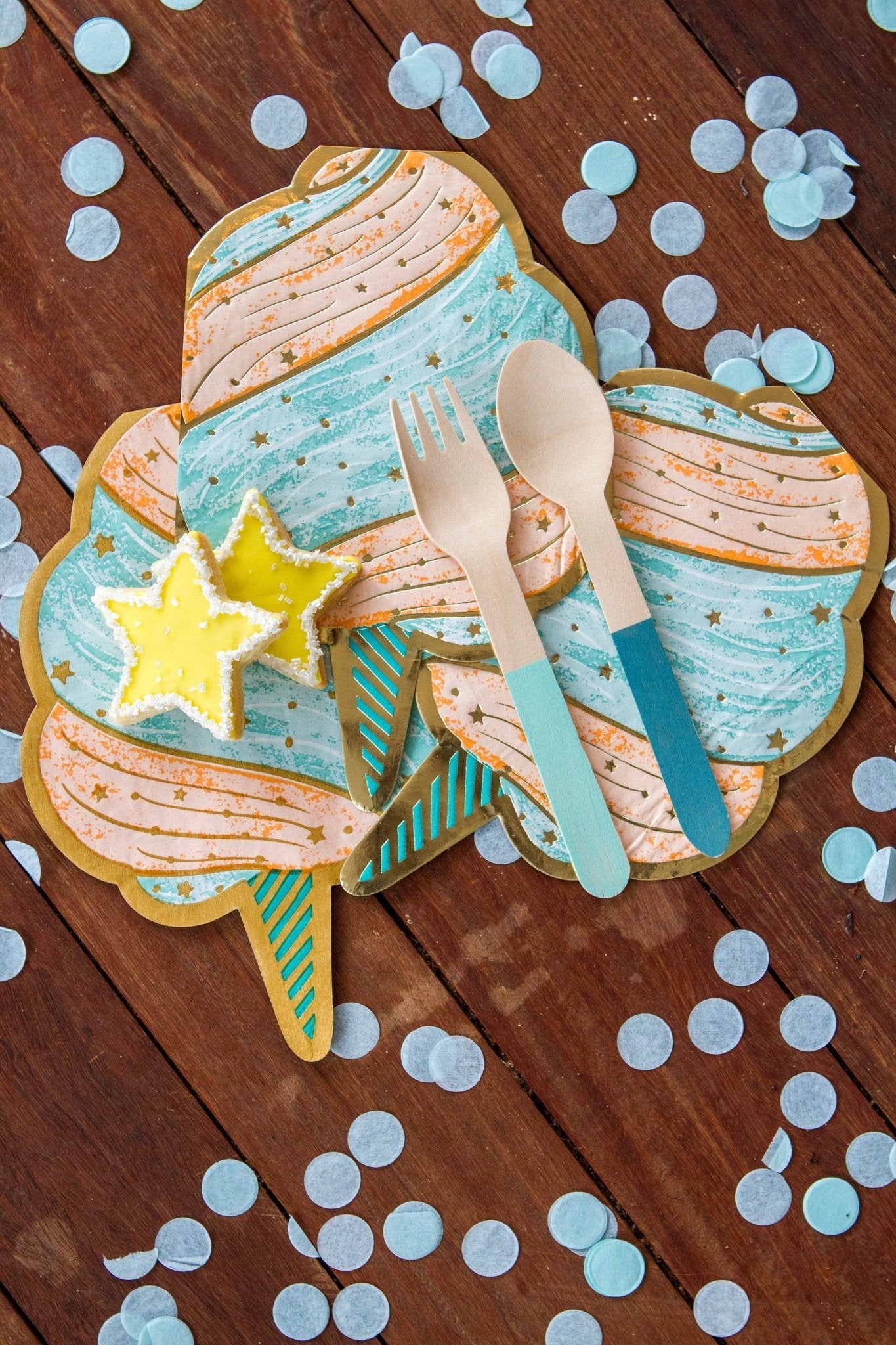 Complement your sweet-themed celebration with our Cotton Candy Party Napkins, featuring a delightful blend of teal, mint, peach and coral hues along with shimmering gold foil stars and accents. These paper napkins capture the whimsical essence of a fun fair or candy land party, adding a playful and vibrant touch to your table setting. Ideal for serving treats or cleaning up sticky fingers, they bring a touch of magic and nostalgia to your event. Elevate your party decor with these charming napkins that are as sweet as the treats they complement!