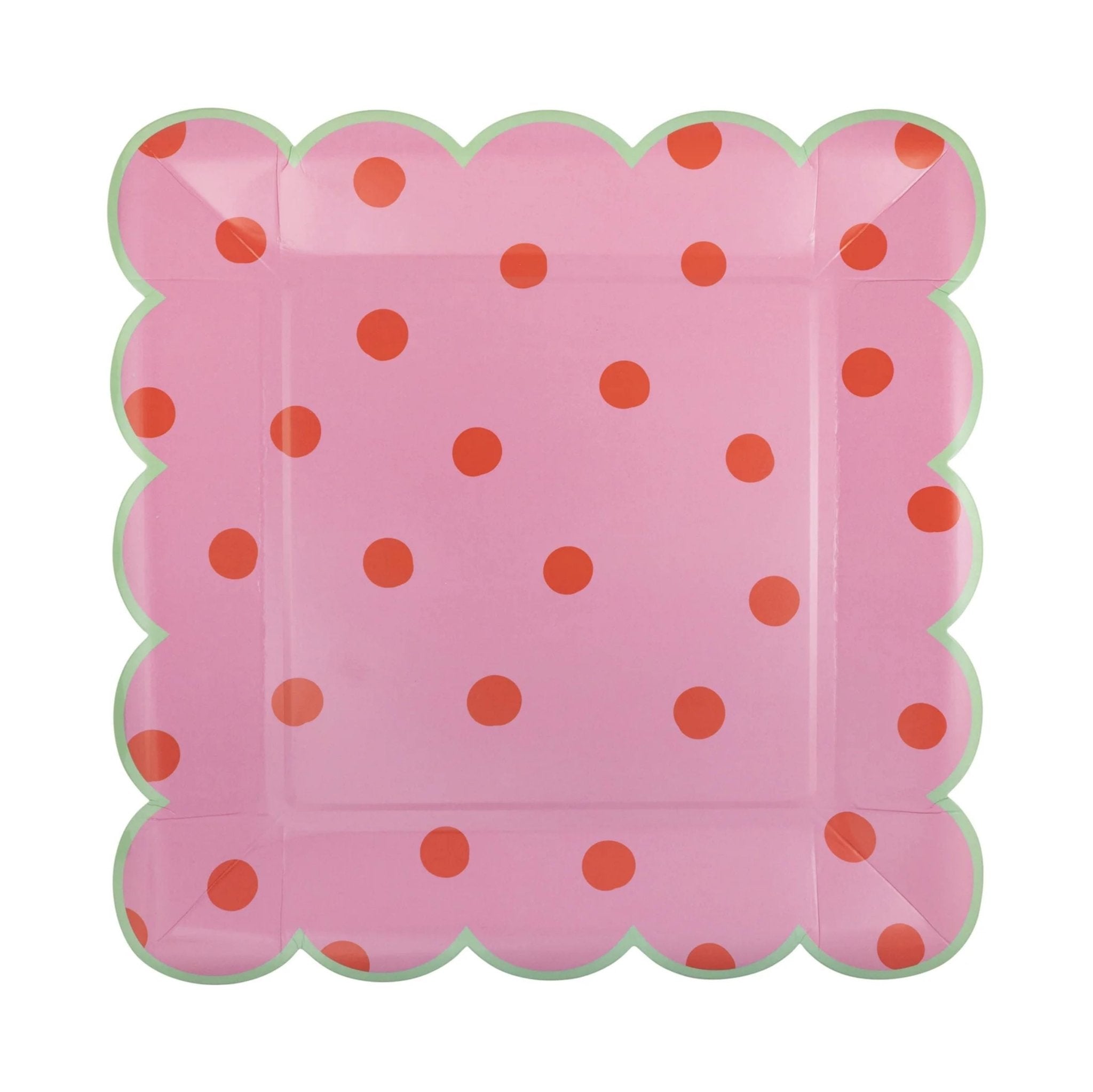 Add a playful touch to your celebration with these Polka Dot Party Plates! This set includes two vibrant designs: one features a pink square plate with red polka dots and a mint green scalloped edge, while the other showcases a mint green square background adorned with blue polka dots and a pink scalloped edge. These fun and colorful plates are perfect for any party or special occasion. With their cheerful patterns, they’ll brighten up your table and make your celebration even more memorable!