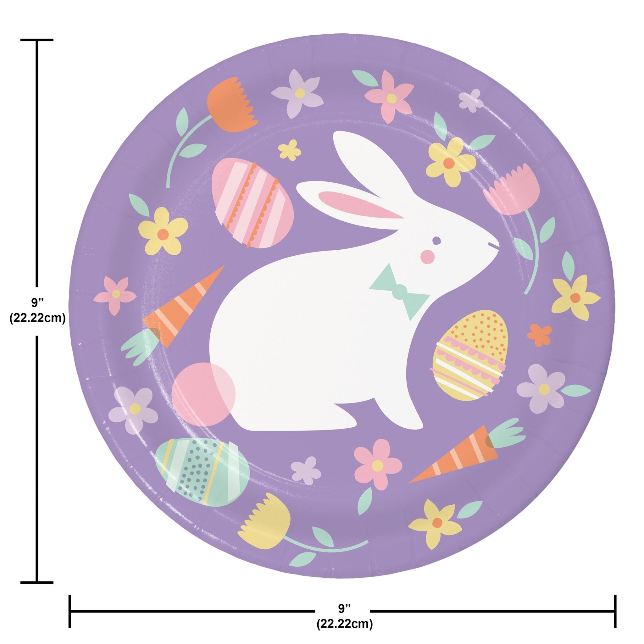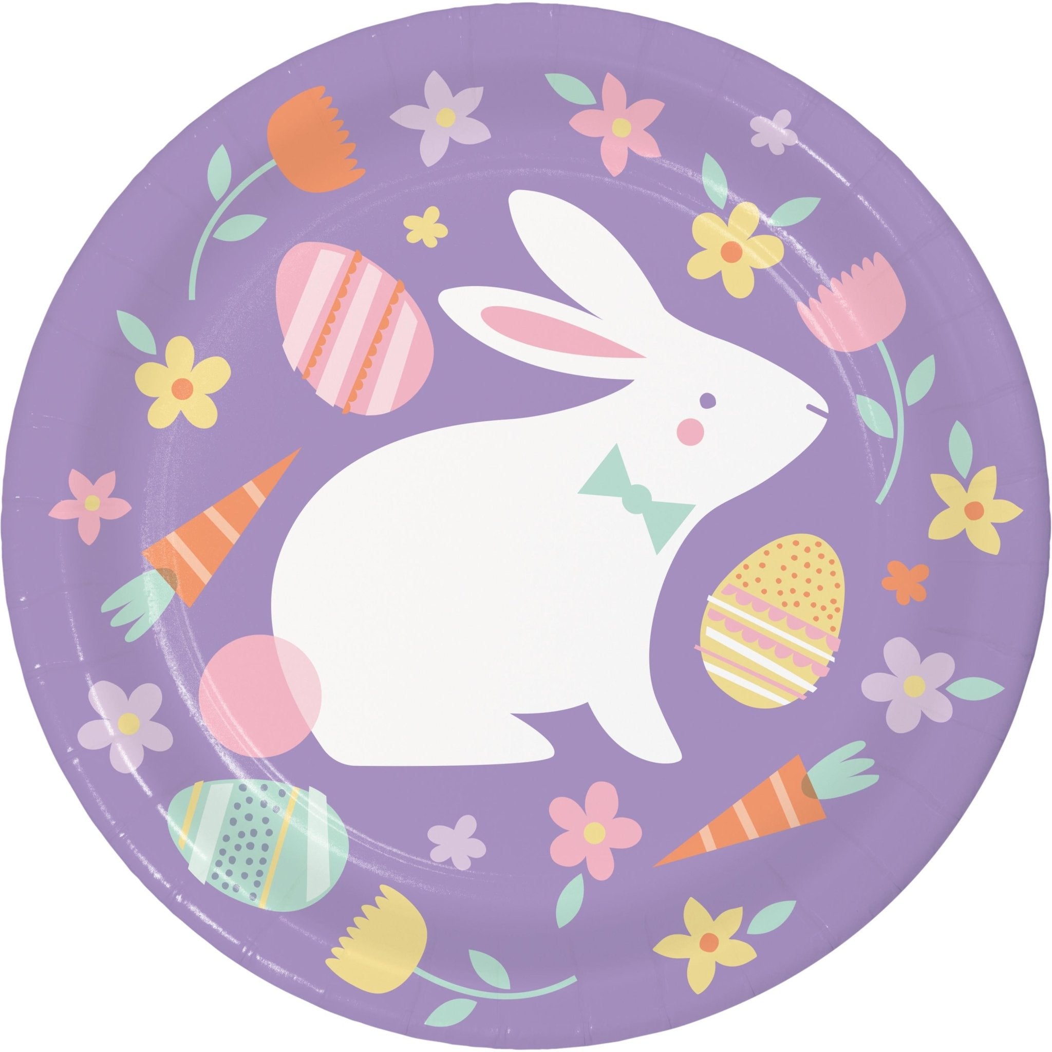 Hop into Easter festivities with our adorable Purple Easter Bunny Plates! These charming paper plates feature a sweet white bunny with a mint bow tie, surrounded by vibrant eggs, flowers, and carrots. Perfect for serving appetizers, desserts, or festive treats, these plates bring playful elegance to your spring celebrations. Combine practicality with a whimsical design to create a delightful table setting that guests of all ages will love!