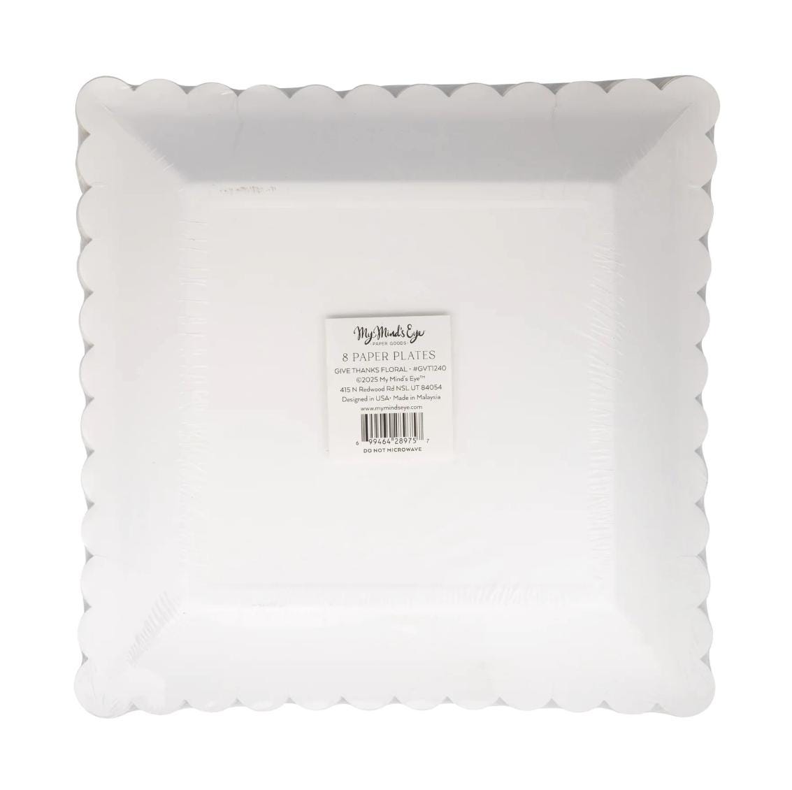 • 9" square with scalloped gold edge