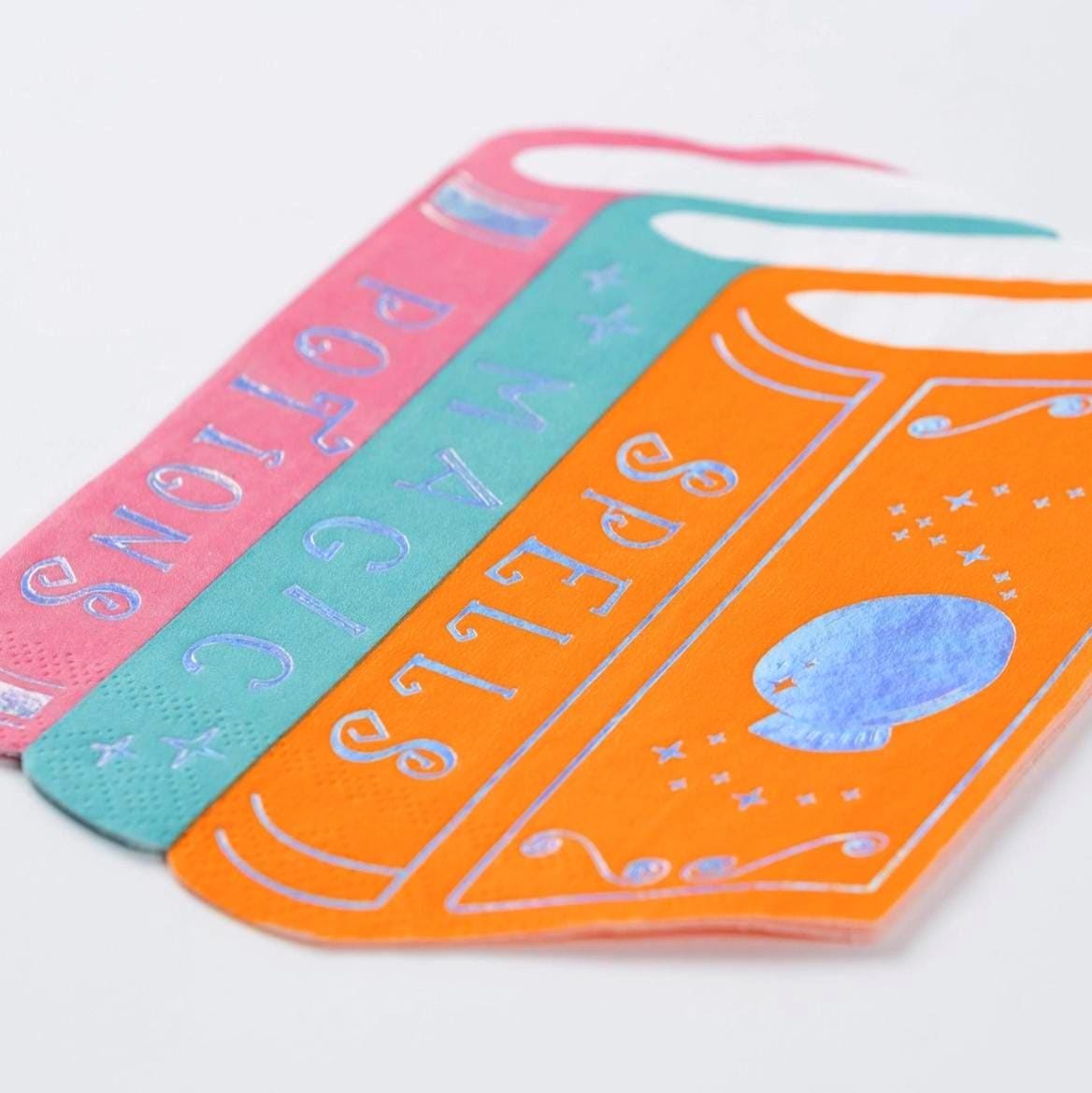 Cast a stylish spell on your Halloween table with these magical book-shaped napkins! With pastel colors, holographic foil, and playful labels like “Spells” and “Potions,” they’re perfect for witchy parties, candy buffets, and spooky soirées.