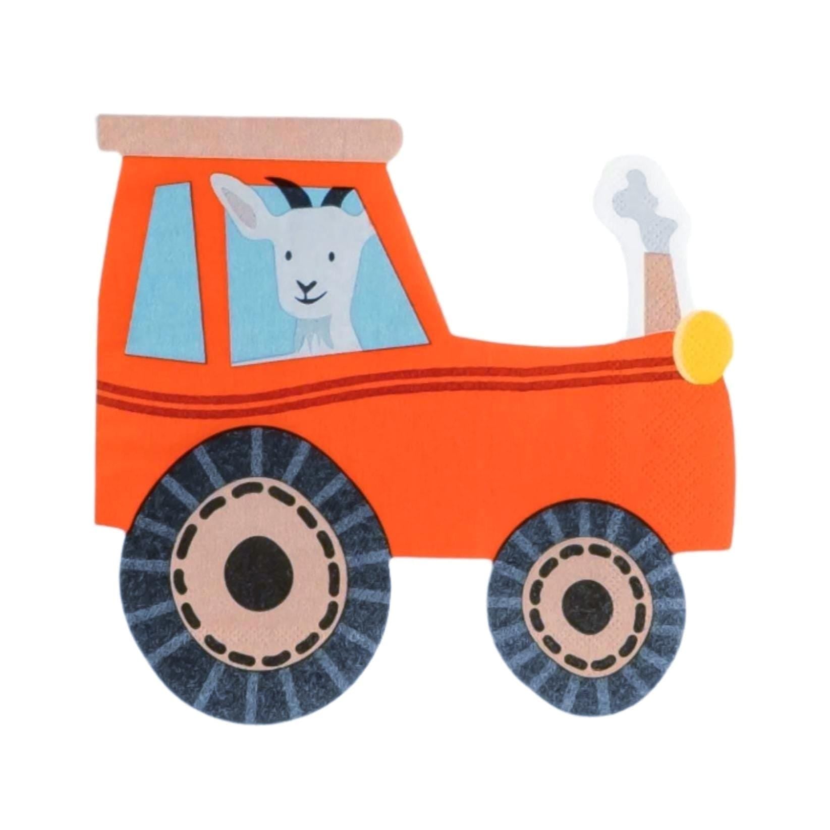 Bring a playful pop of farmyard fun to your celebration with these charming tractor-shaped napkins! Each napkin features a bright red tractor with a cheerful goat behind the wheel—perfect for little farmers, animal lovers, and barnyard birthday themes. Ideal for cake, snacks, and drink stations, these sturdy napkins add personality to any farm party, toddler celebration, or tractor-themed bash.