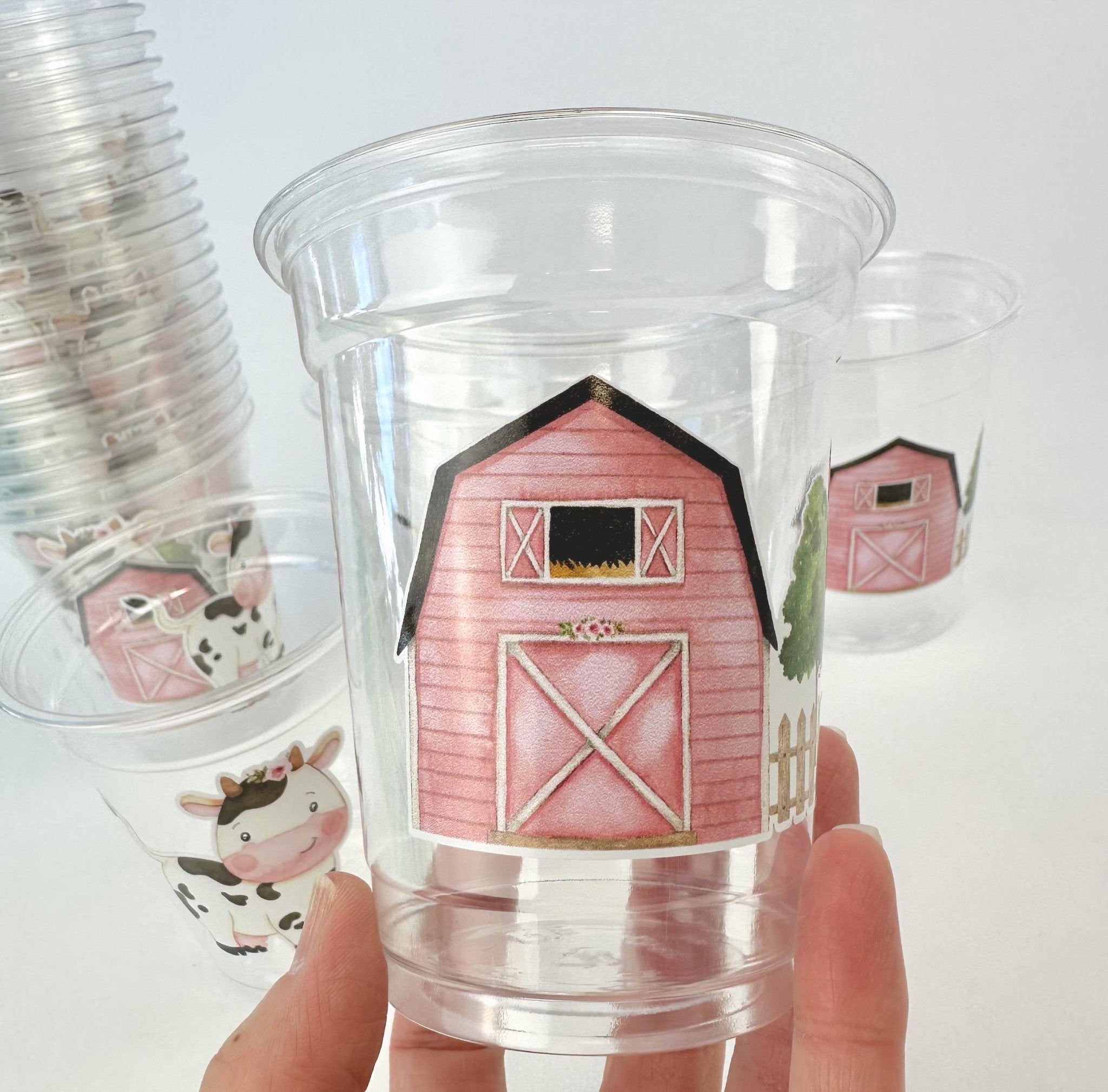 Celebrate your little cowgirl with these adorable 12oz clear cups featuring a pink barn and sweet cow wearing a floral crown. Perfect for a farm-themed first birthday, baby shower, or little girl’s barnyard bash. Durable, disposable, and designed to coordinate with girly western and countryside party decor.