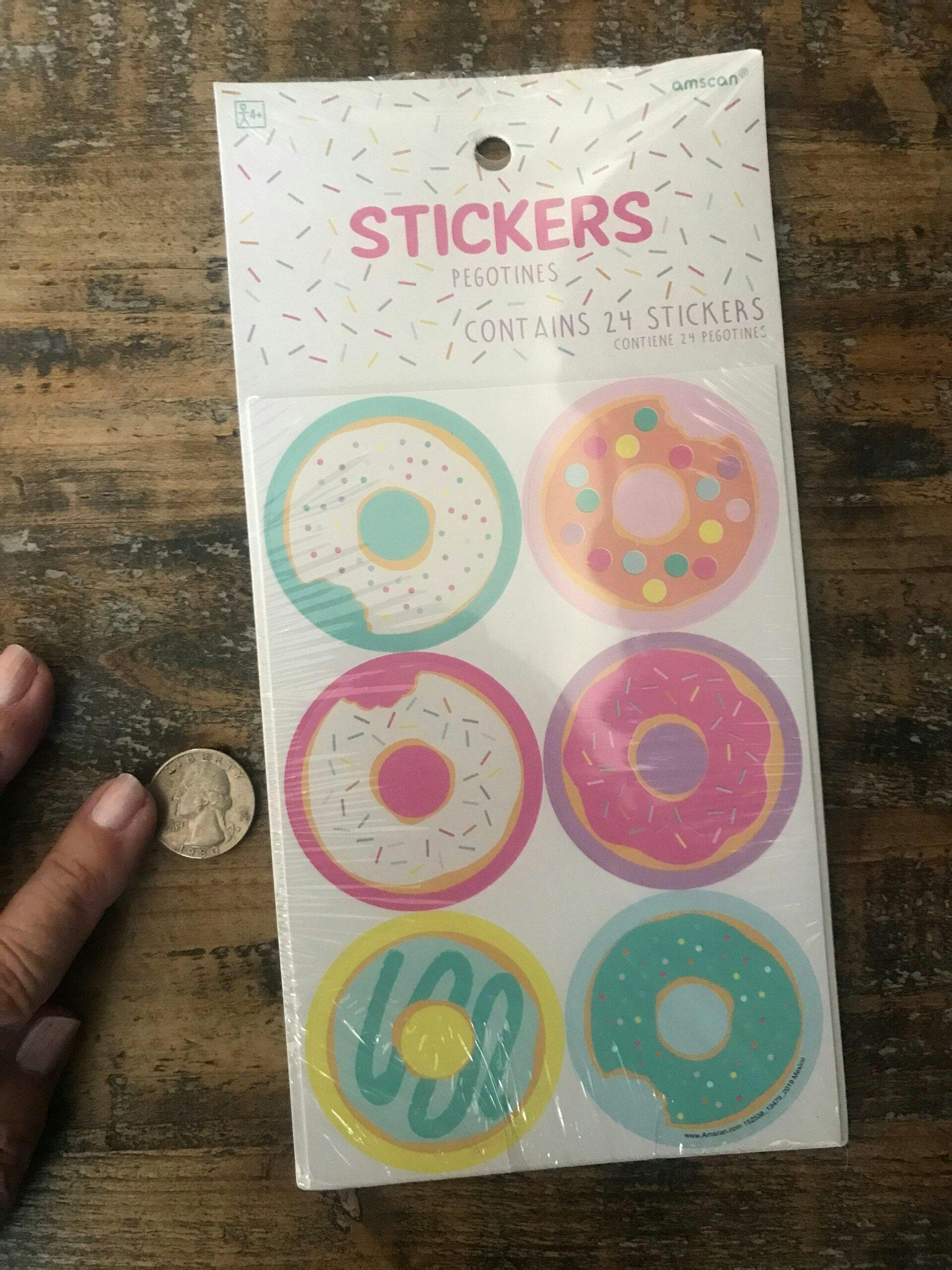 Use these cute donut stickers as birthday party favor bag seals, invitation seals, craft supplies, and much more!