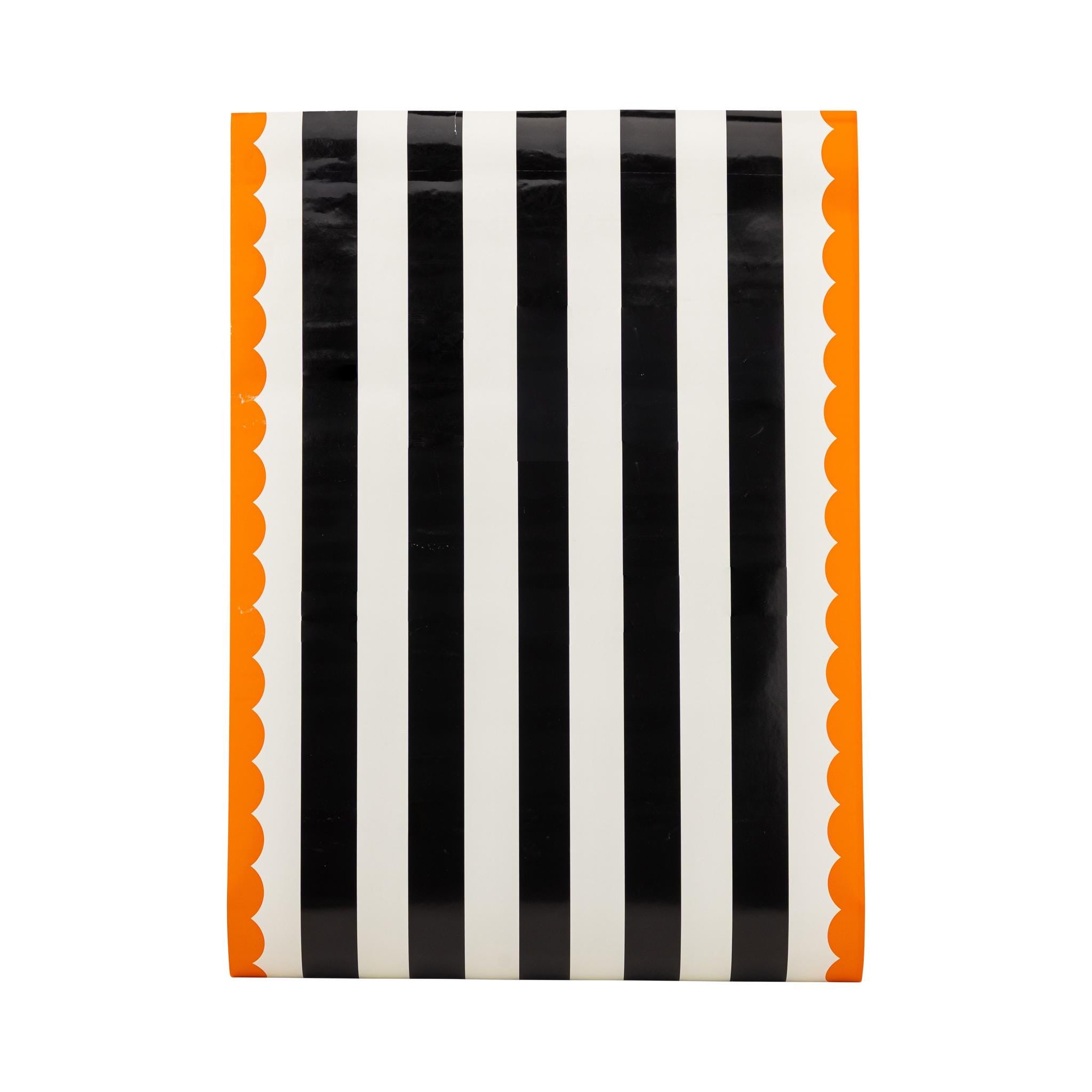 Set the scene with this bold black-and-white striped paper table runner, finished with a vibrant orange scalloped edge. At 16 x 120 inches, it’s the perfect fit for Halloween gatherings, construction-themed parties, or any event that calls for a striking tablescape. Made of durable disposable paper, it makes cleanup simple while keeping your table stylish.