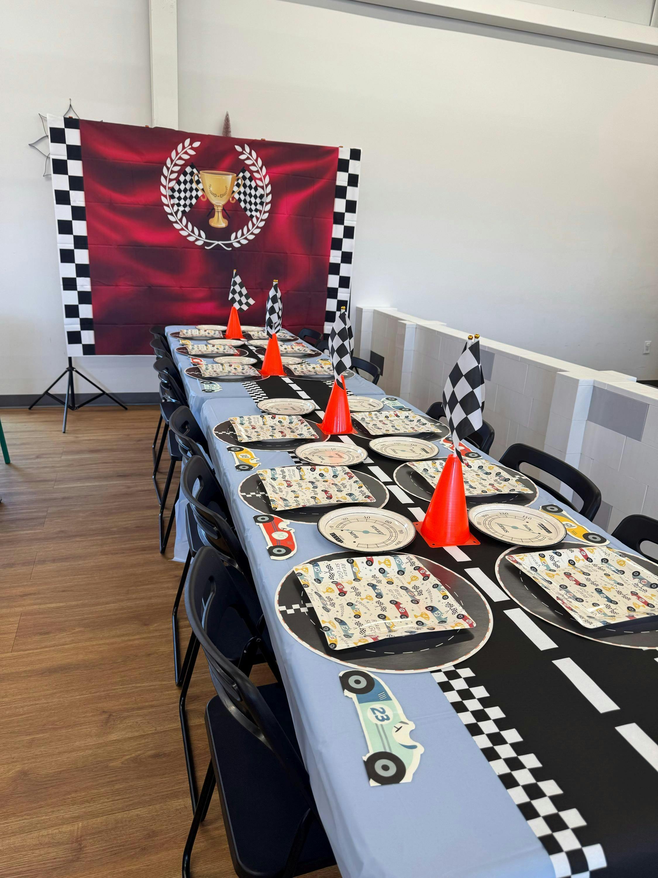 Bring high-speed excitement to your party with our TurboTrack Race Car Table Runner! Crafted from non-woven fabric, this lightweight, felt-like table runner features a thrilling race track design complete with roads and checkered flags. Perfect for racing-themed birthdays or playdates, it transforms any table into a dynamic racetrack for endless fun. Durable and stylish, this table runner is the ultimate decor piece for speed enthusiasts of all ages. Get ready to race into an unforgettable celebration!