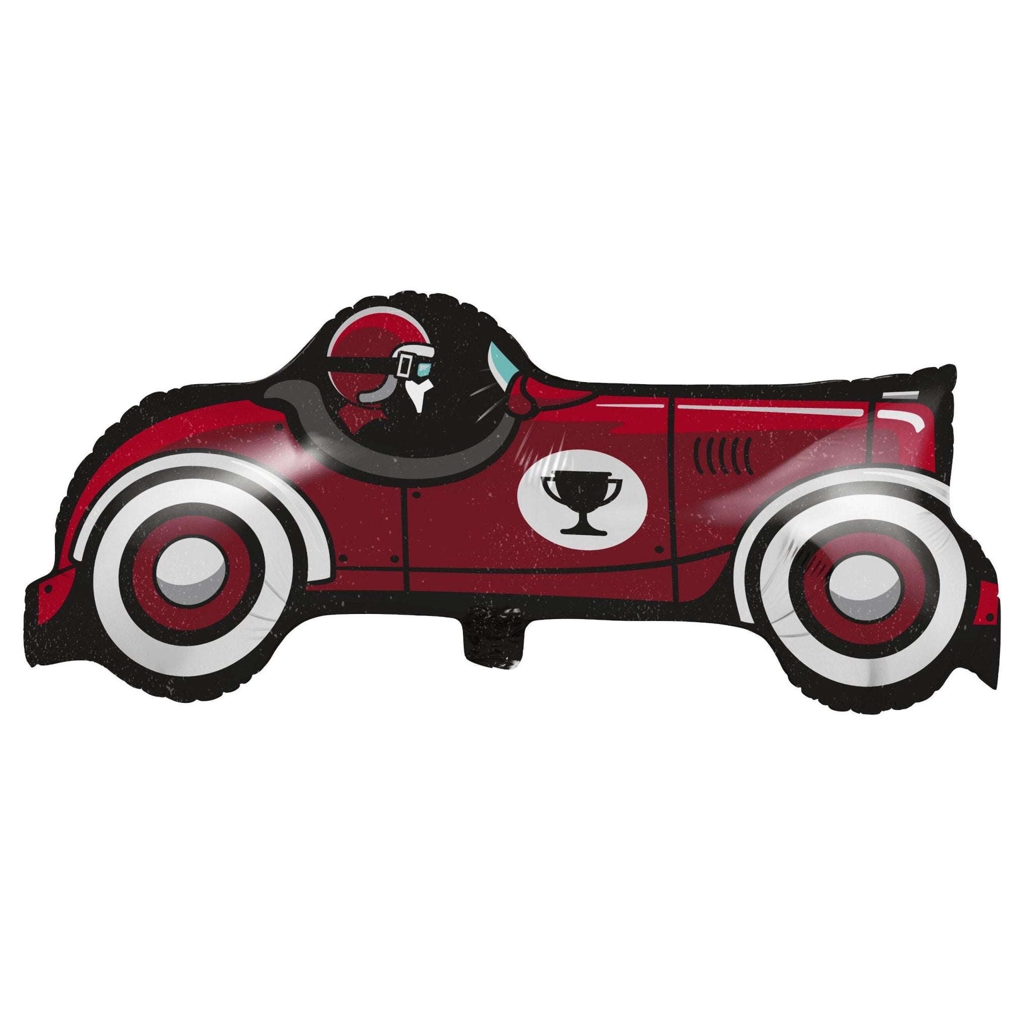 Kick your party into high gear with this giant race car balloon! Featuring a bold red vintage car design with trophy emblem and cool driver, this foil balloon makes a high-impact addition to any racing-themed celebration. Great for boys' birthdays, toddler parties, or race day events.
