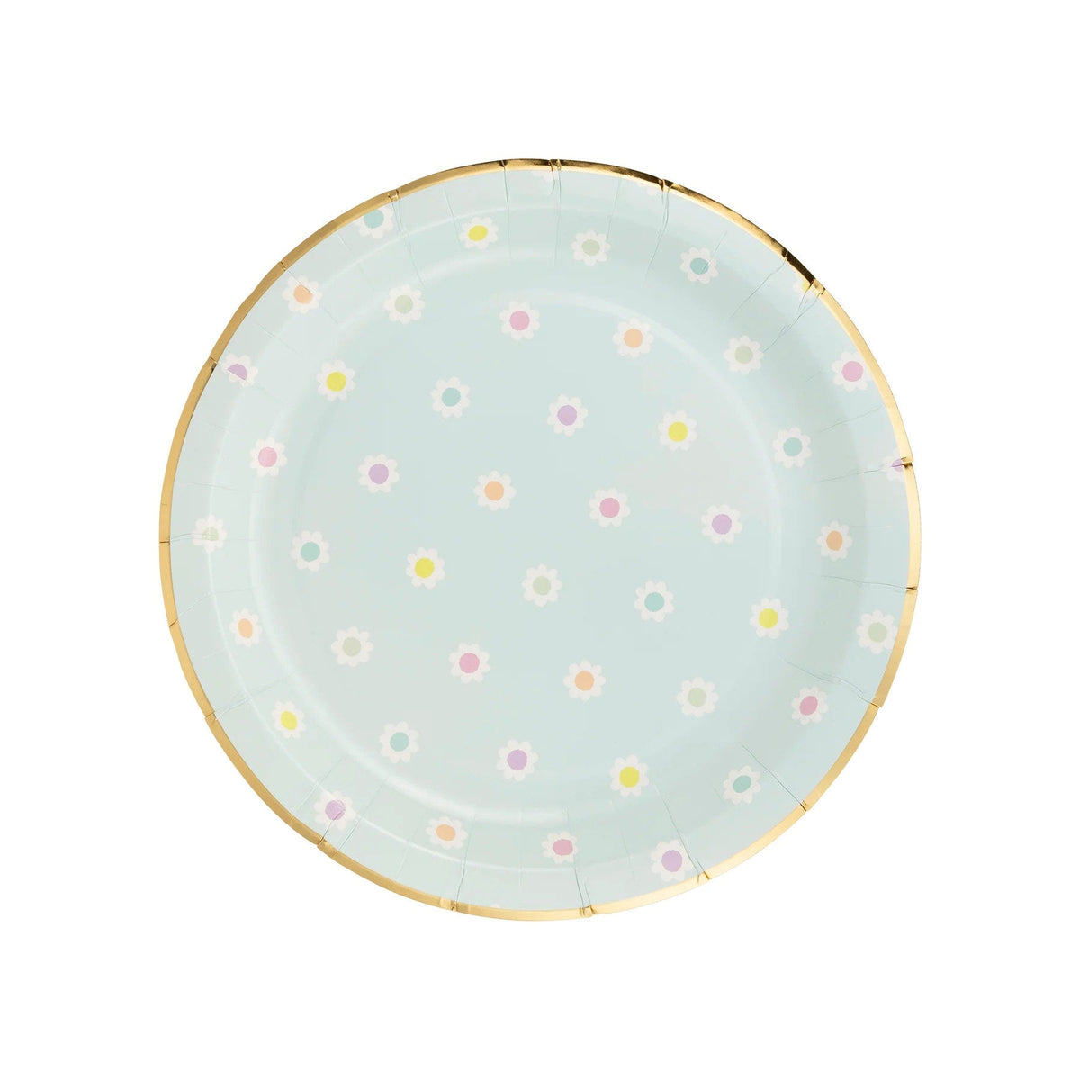Add a vibrant touch to your flower-themed parties with our dazzling blue floral plates adorned with radiant rainbow daisies and a gold foil rim. Perfect for adding a burst of color to any celebration, these cute paper plates bring a playful charm to your table setting. They offer both style and durability, ensuring your daisy party decor stands out effortlessly. Make your flower party experience unforgettable with these delightful plates that promise to captivate guests with their lively design.