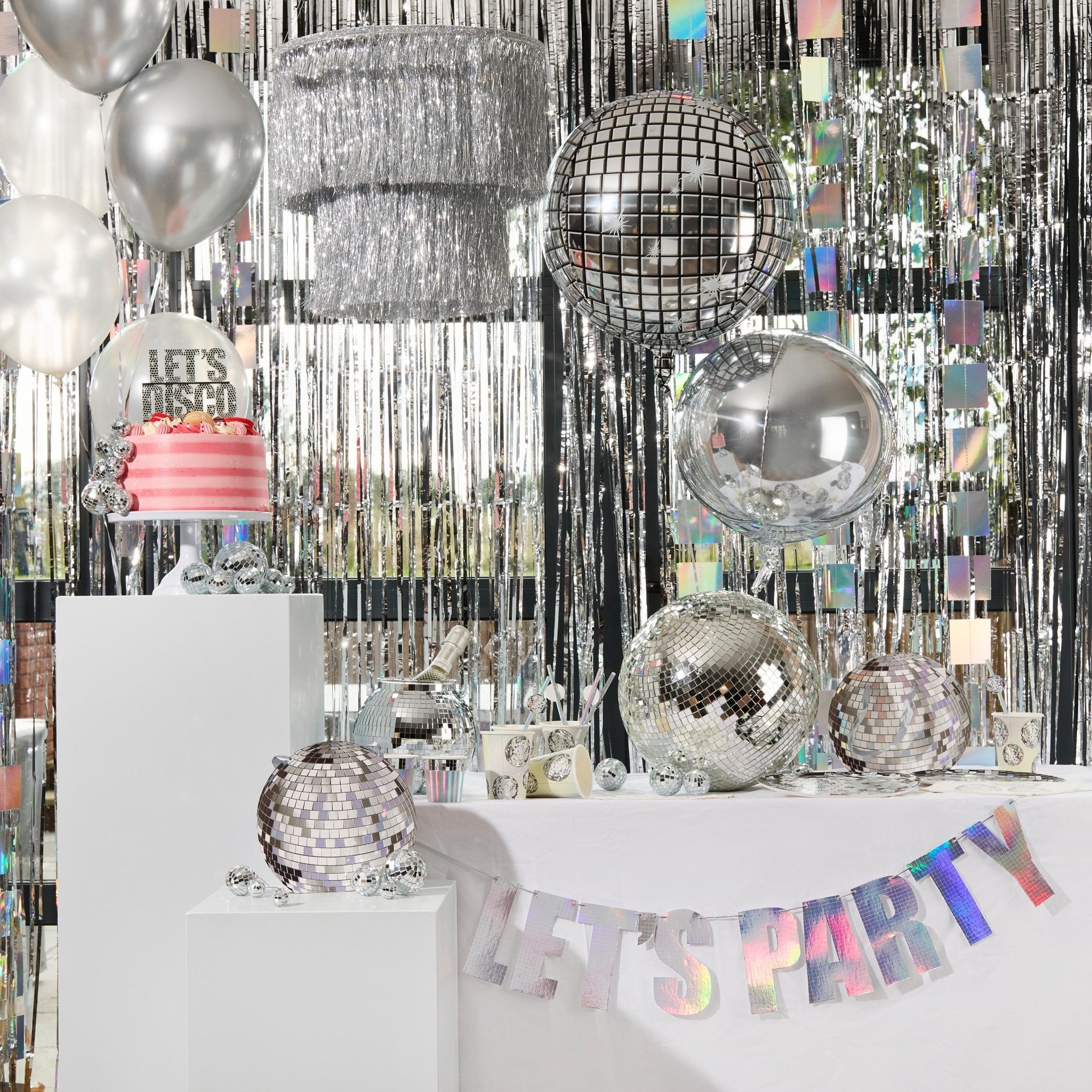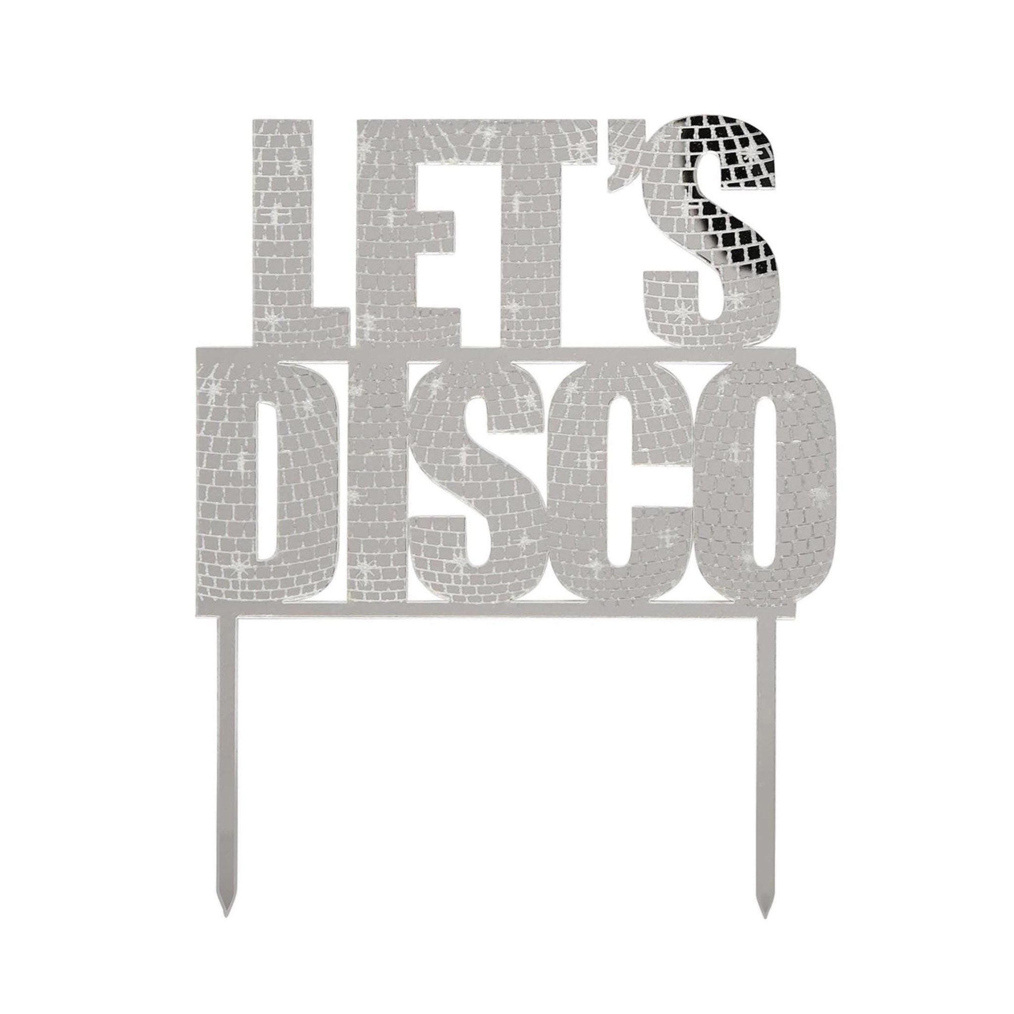• Silver 'Let's Disco' Acrylic Cake Topper