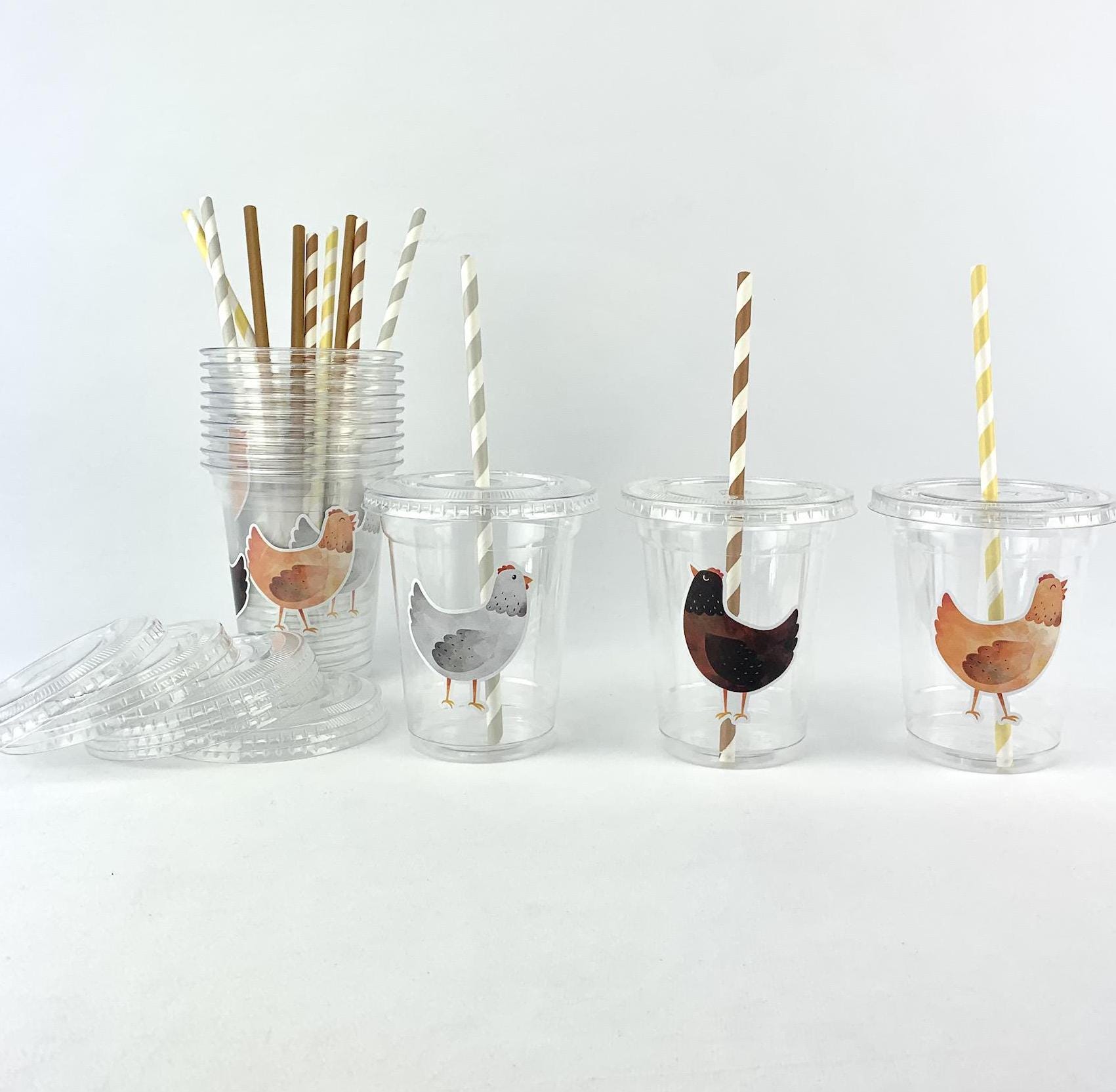 Add a touch of countryside charm to your celebrations with our Hen Party Cups! These clear plastic cups are adorned with delightful illustrations of chickens in gray and brown hues, each bringing rustic elegance to your table setting. Coordinating paper straws complete the look, making these cups both stylish and functional. Perfect for farm-themed parties, spring gatherings, or rustic bridal showers, they’re a fun and practical way to serve beverages. Elevate your drinkware with these charming farm animal-inspired party cups!