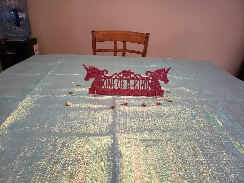 This stunning unicorn party centerpiece will make your party decor sparkle! Set it near the cake, in-between your appetizers and sweet treats, or at the center of your guest table. This beautiful centerpiece surely will help make your party or shower 'One Of A Kind'!