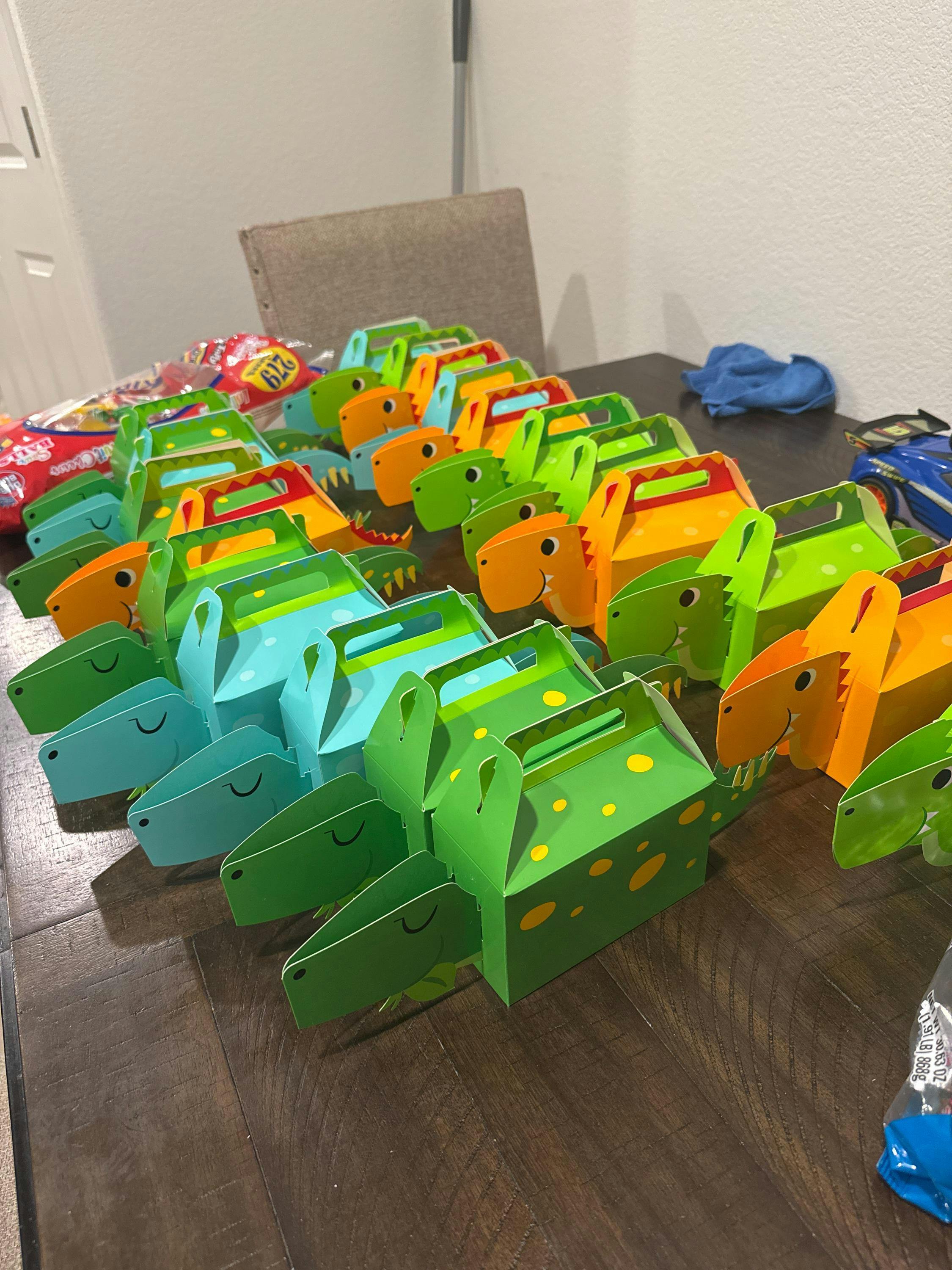 Adorable dino party favor boxes- very cute and our guest's loved as well!