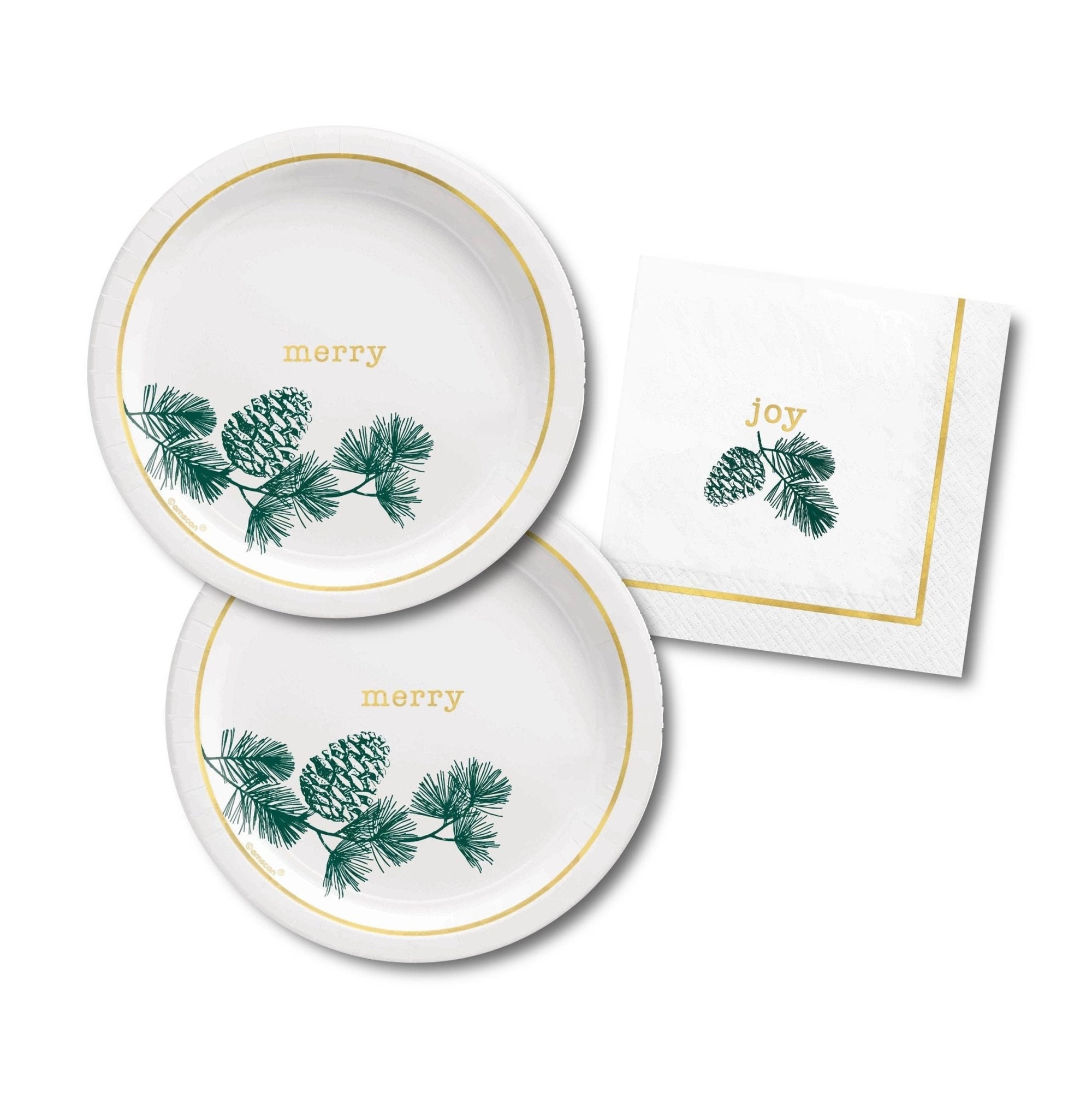 Celebrate Christmas in style with our charming paper plates and napkins, beautifully adorned with festive greenery and elegant gold foil accents. 'Tis the season for memorable gatherings!