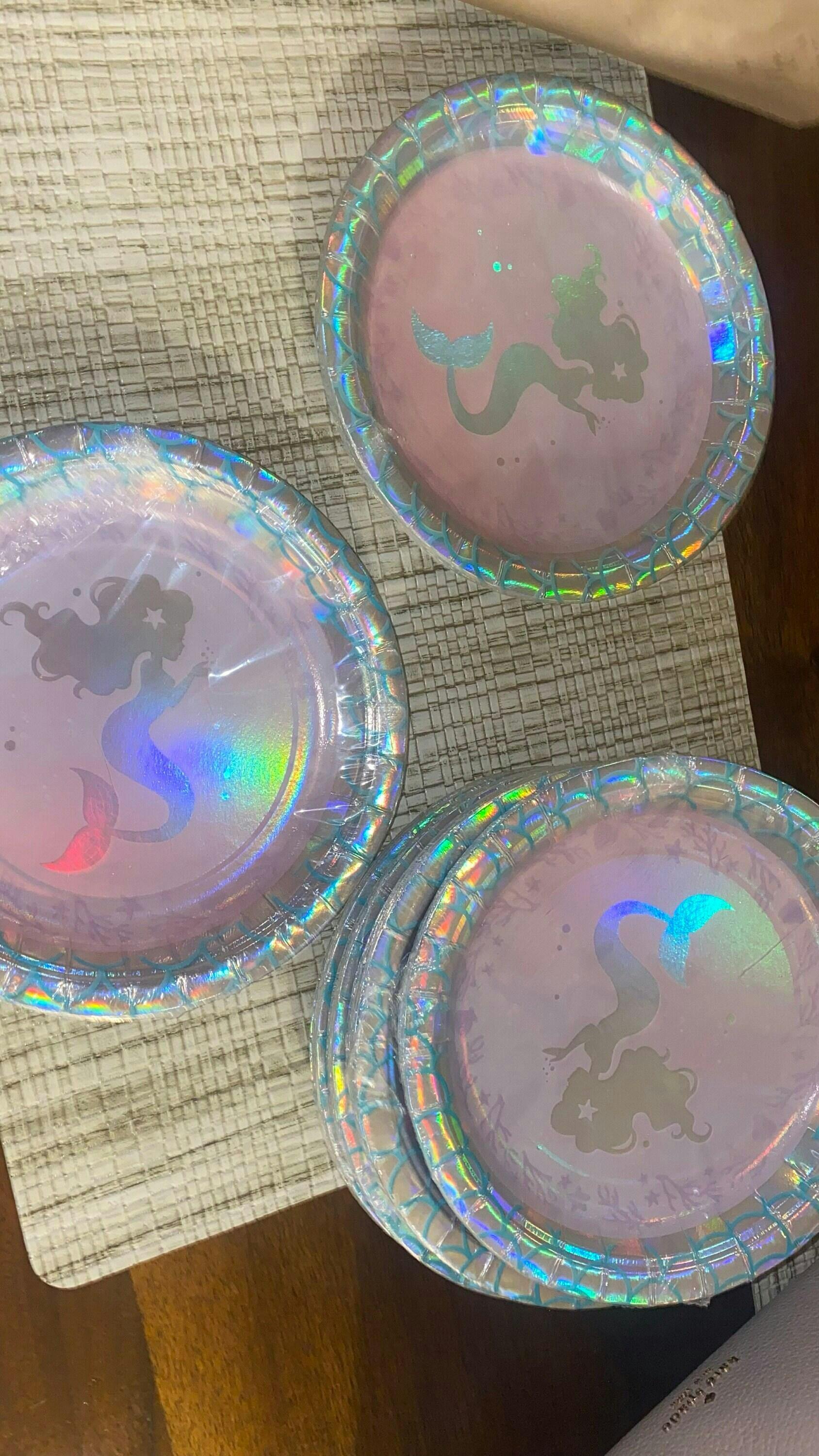 With a beautiful iridescent shimmer, these mermaid party cake plates are sure to add a beautiful touch to your mermaid party decor!