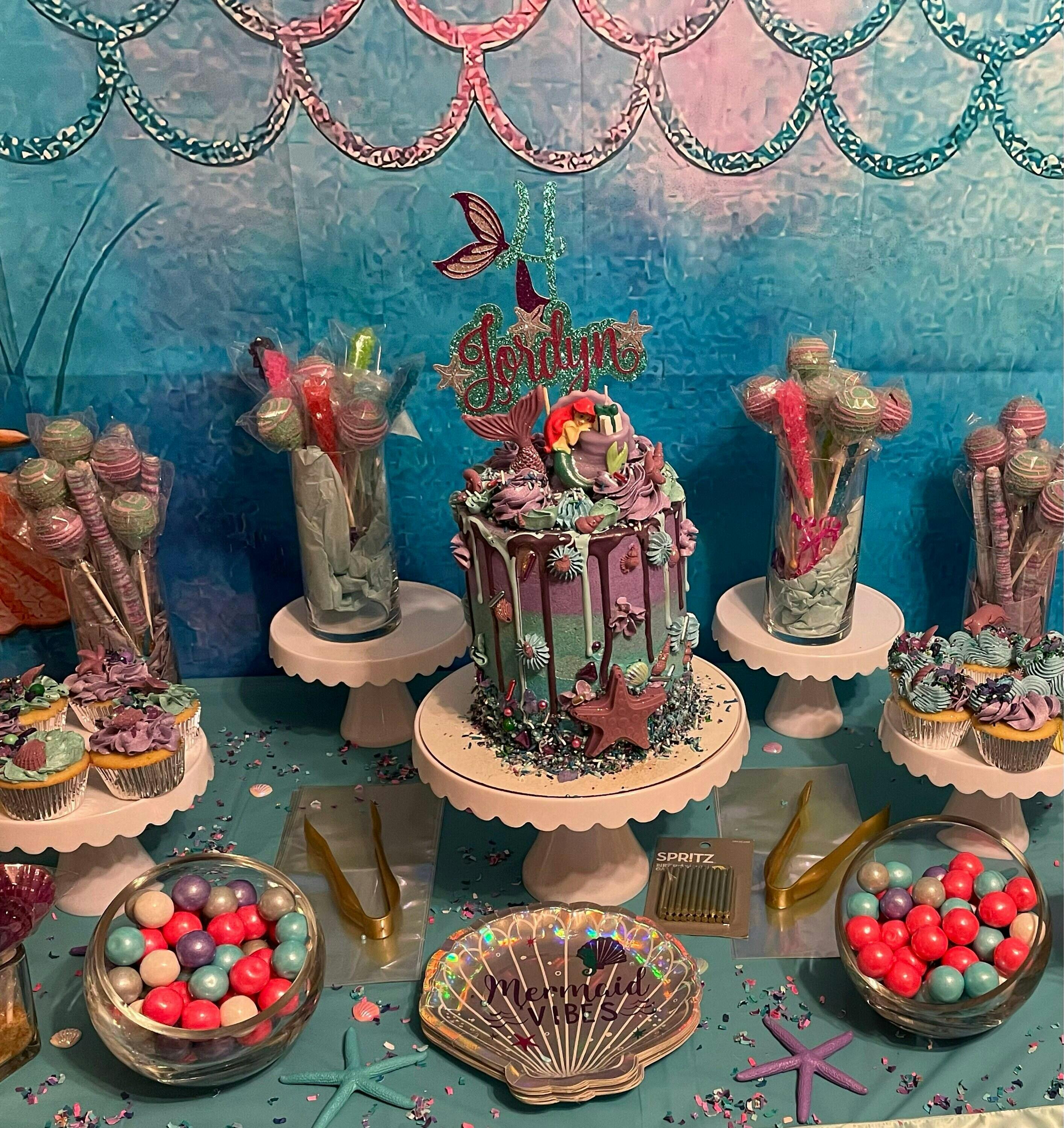 These beautiful iridescent shell plates are perfect for dishing up a slice of mermaid party cake!
