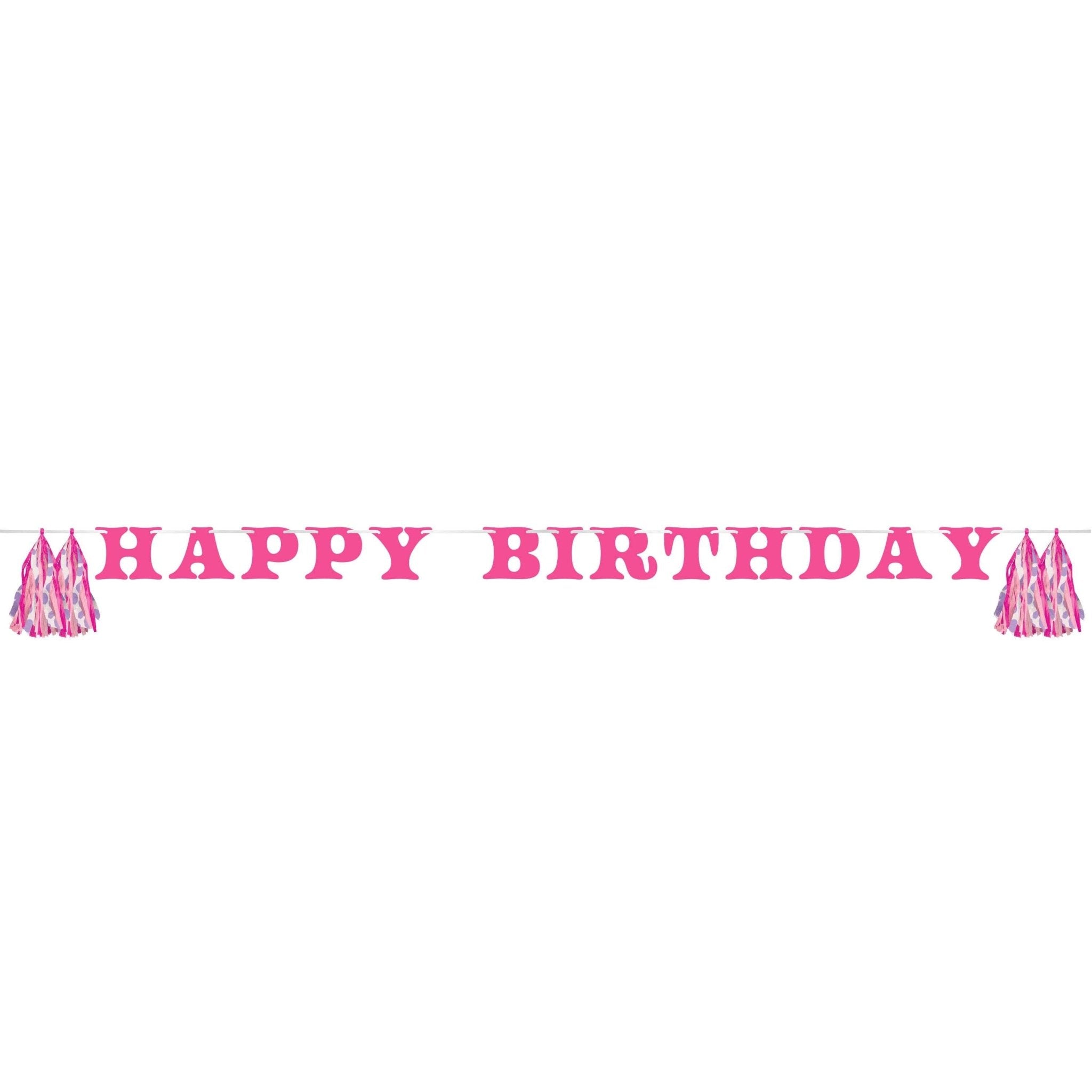 Saddle up for celebration! This pink “Happy Birthday” banner with tassel accents adds a bold and playful touch to your party setup. Perfect for cowgirl themes, western birthdays, first rodeos, bachelorettes, or even spa-inspired birthdays, this versatile garland fits right in with any bright or pink-themed bash. Hang it above dessert tables, in photo booths, or across party walls to set the scene for a rootin’-tootin’ good time.