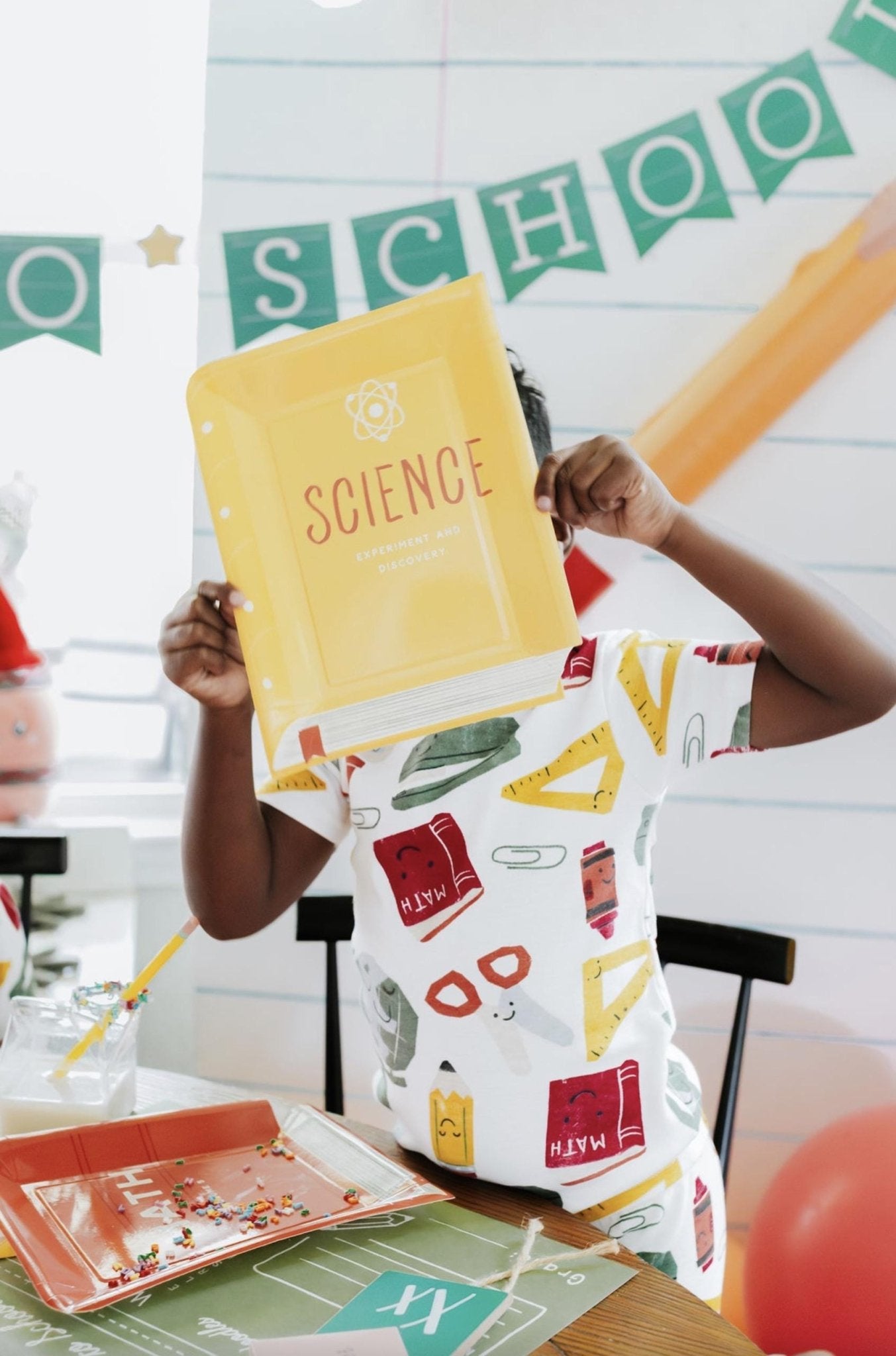Bring fun classroom vibes to your table with these school textbook‑themed paper plates! This set includes 9 assorted designs shaped at 7.75" x 10", making them perfect for serving snacks, desserts, or light meals at back‑to‑school parties, teacher appreciation events, and classroom celebrations.