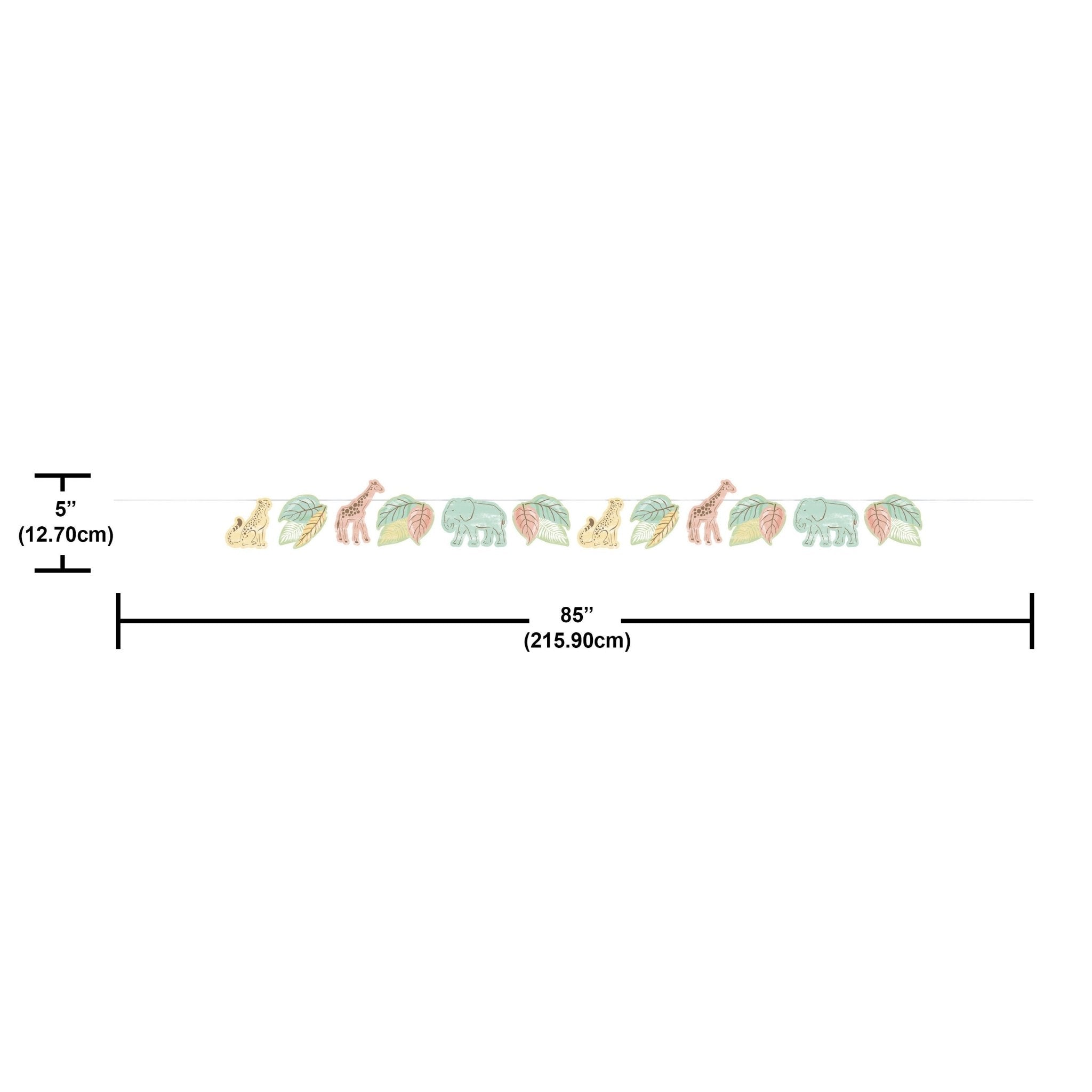 Welcome your little one into the world with our Safari "Welcome Baby" 2-Piece Banner! This delightful set includes two coordinating banners: one with the cheerful "Welcome Baby" message in green spotted letters, and the other adorned with charming illustrations of a cheetah, giraffe, and elephant, complemented by lush greenery. Perfect for adding a touch of safari magic to your jungle baby shower or nursery, this baby banner creates a warm and festive atmosphere for celebrating your newest arrival.