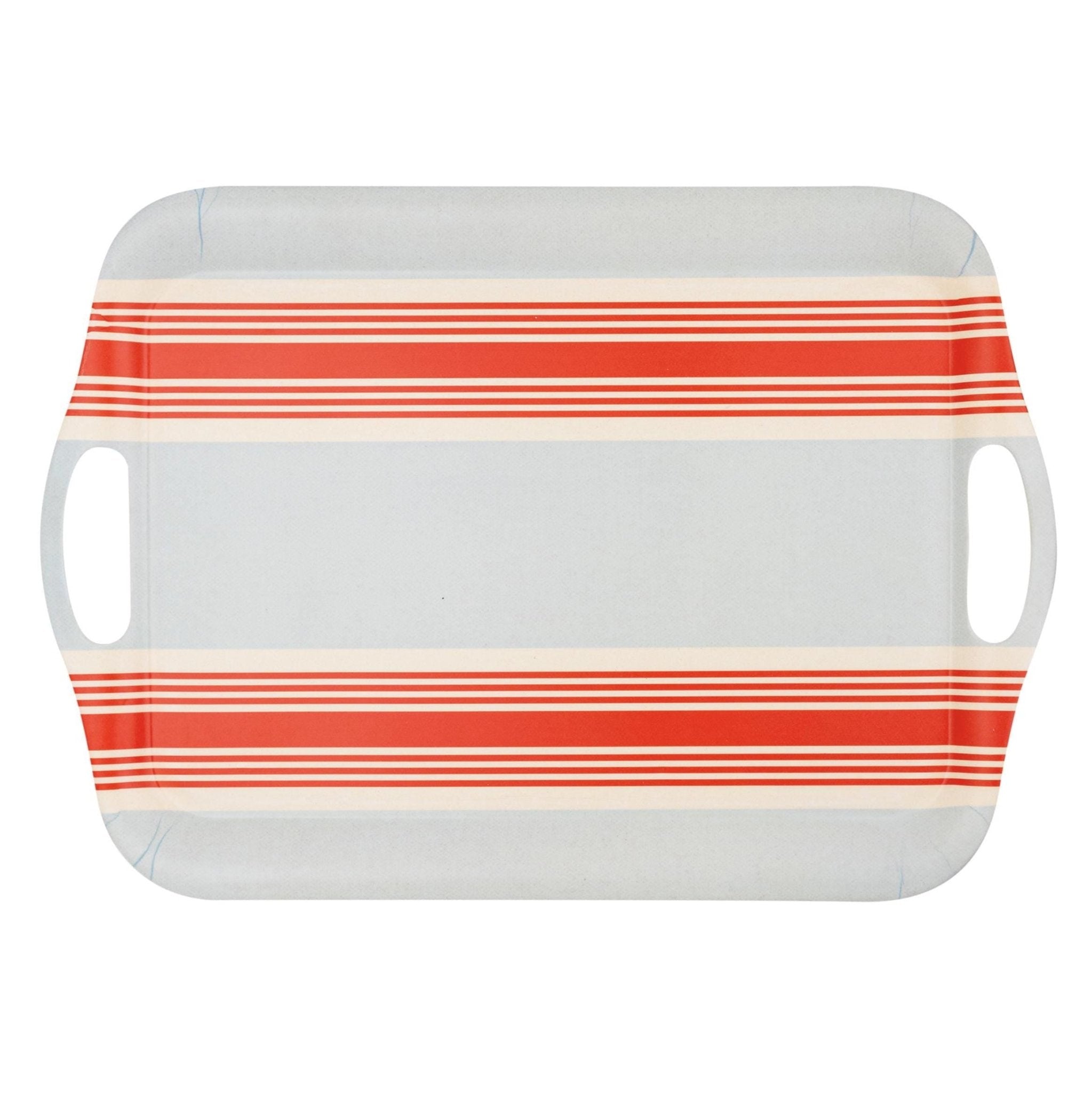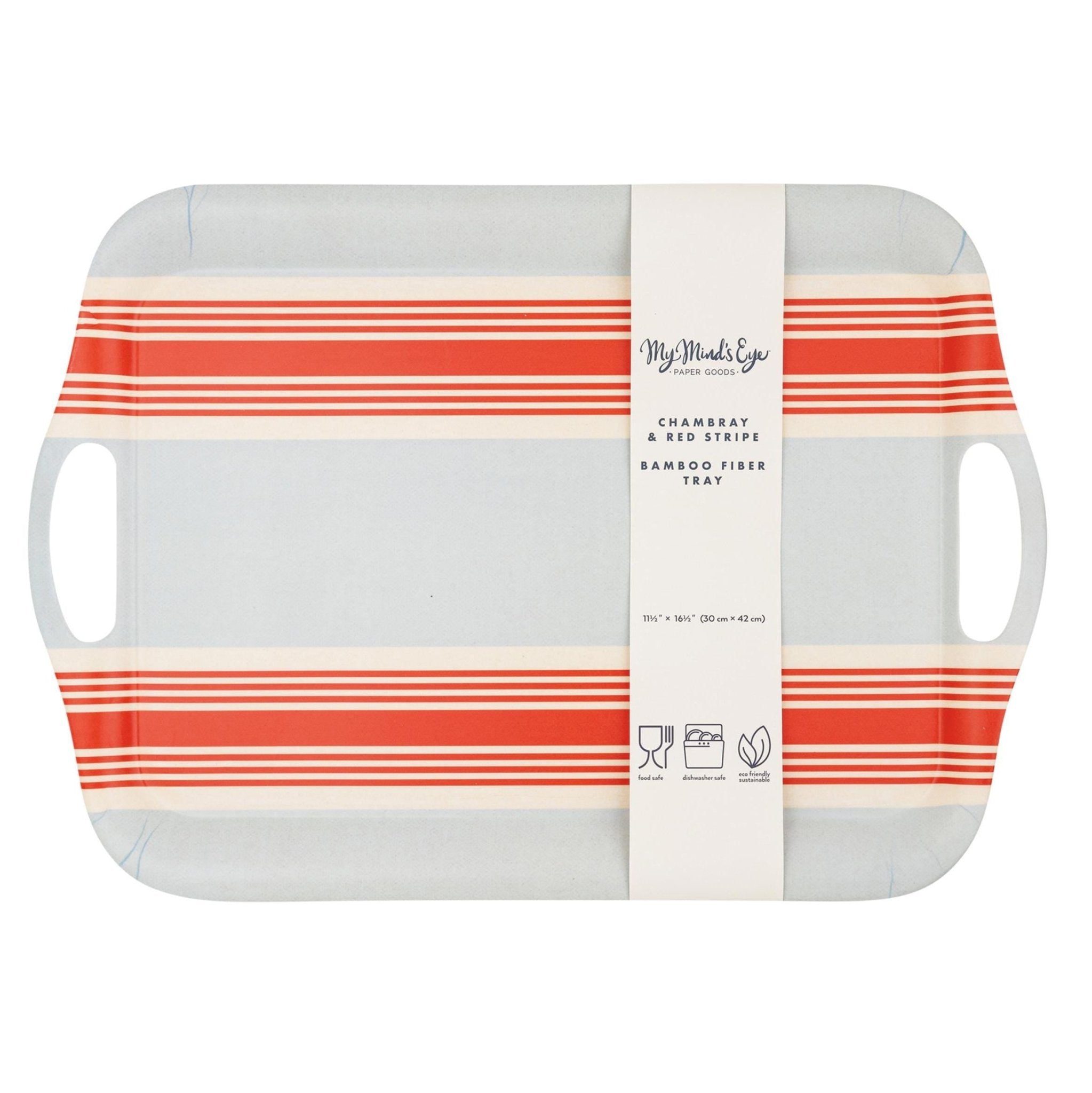Add a touch of patriotic charm to your celebrations with our Red, White & Blue Serving Tray. This light blue bamboo tray features two rows of bold red and white stripes and convenient handles on both sides for easy carrying. Perfect for serving snacks, drinks, or desserts, this tray is a stylish and functional addition to Fourth of July parties, Memorial Day picnics, blue & red themed birthdays, and summer gatherings. Its durable design ensures it can handle any feast while adding a festive flair to your table. Celebrate in style with this versatile serving essential!