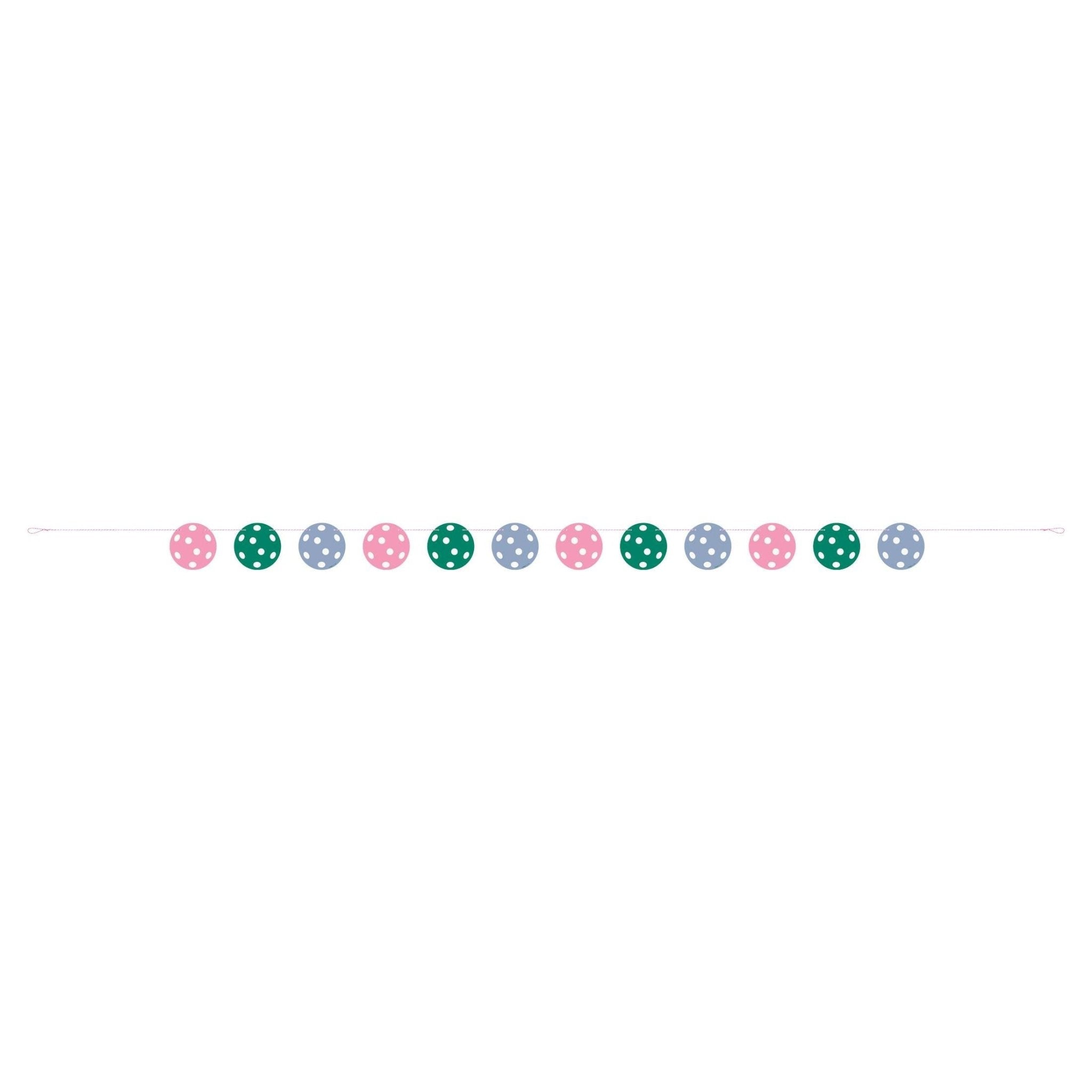 Celebrate in sporty style with this 2-piece pink pickleball pennant banner featuring diecut crests and balls. Perfect for pickleball-themed birthday parties, game day celebrations, or club events, this lightweight banner is easy to hang and adds a festive, playful touch to any space. Durable yet stylish, it instantly brightens your party area while showing off your love for pickleball in a fun, decorative way.