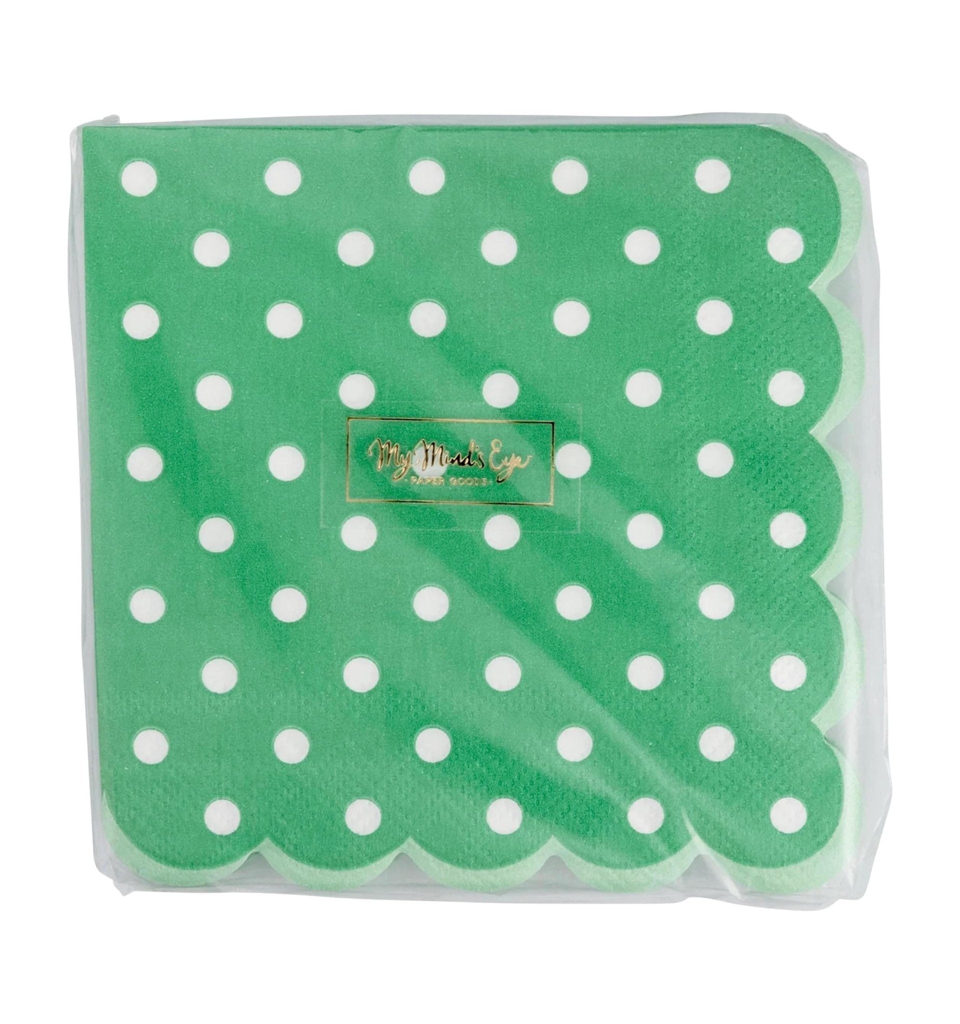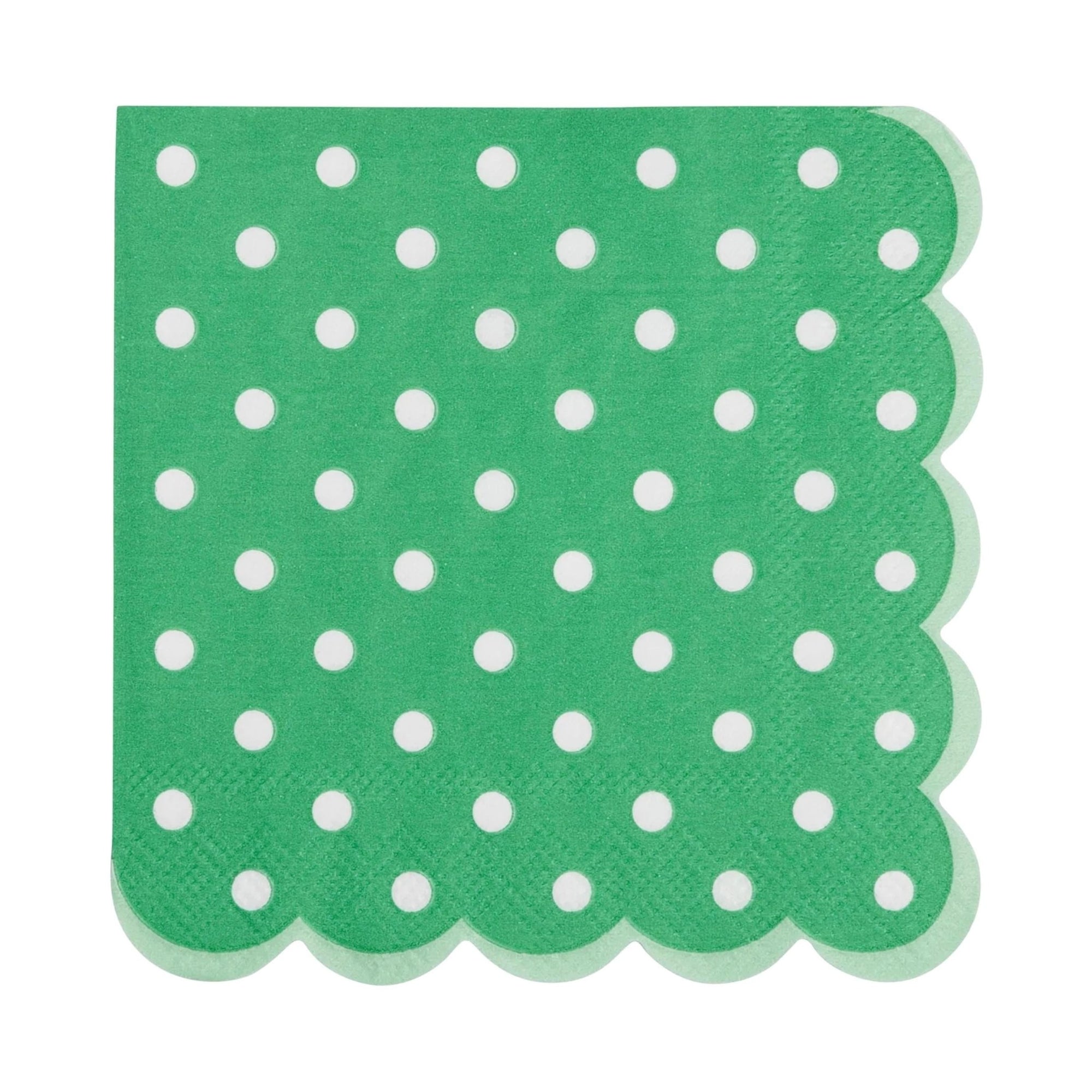 Brighten up your celebration with these Green Polka Dot Party Napkins! Featuring a lively green background with crisp white polka dots and delicate light green scalloped edges, these napkins add a fun and festive touch to any gathering. Perfect for birthdays, St. Patrick’s Day, picnics, or spring celebrations, they bring both charm and functionality to your table. Made from durable paper, they're great for serving drinks, appetizers, or handling spills with ease. Keep your party stylish and mess-free with these cheerful polka dot napkins!