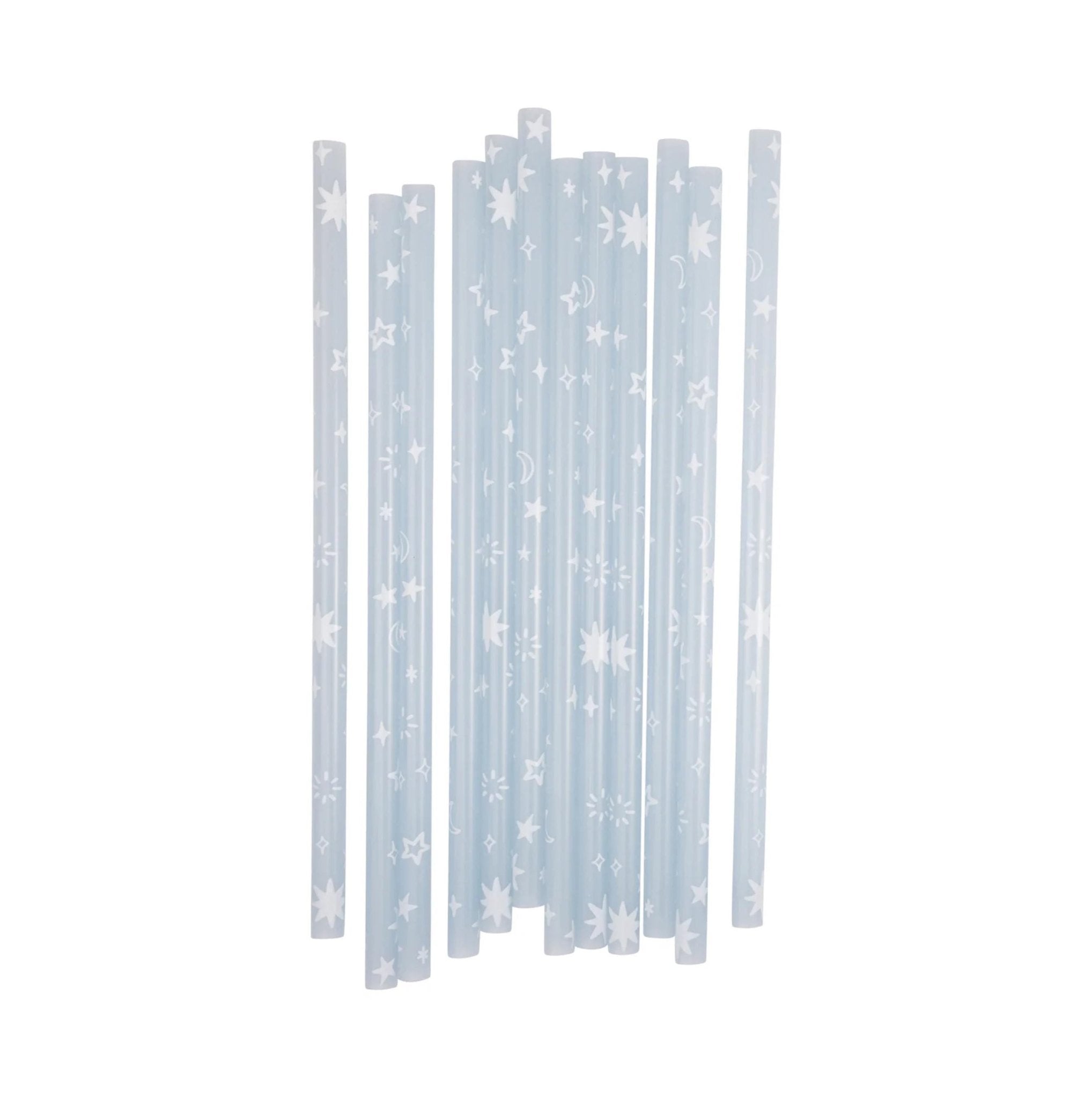 Sip in style with Reusable Space Straws! These color-changing blue straws feature whimsical designs of stars and moons, adding a magical touch to your space-themed party or cosmic celebration. Perfect for both kids and adults, these eco-friendly straws are not only fun but practical, helping reduce waste while enhancing your drink experience. Ideal for space-themed events, galaxy birthday parties, or everyday use, these plastic straws bring a little extra sparkle to every sip!