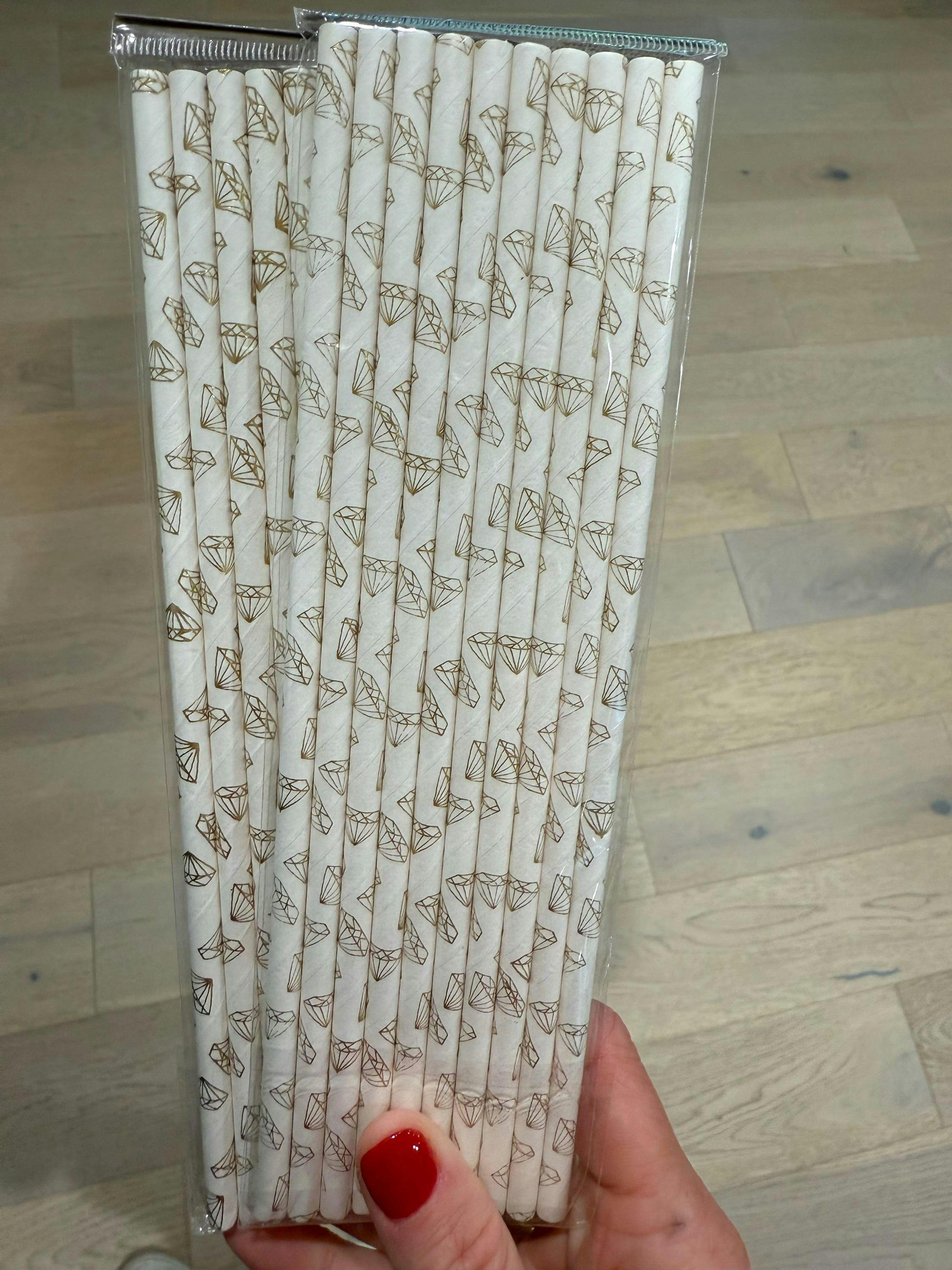 These are a must-have for your bachelorette party weekend! Gold foil diamond rings make these pretty straws the perfect accent to your party decor, and a fun way to sip on cocktails and drinks while you celebrate such a momentous occasion!