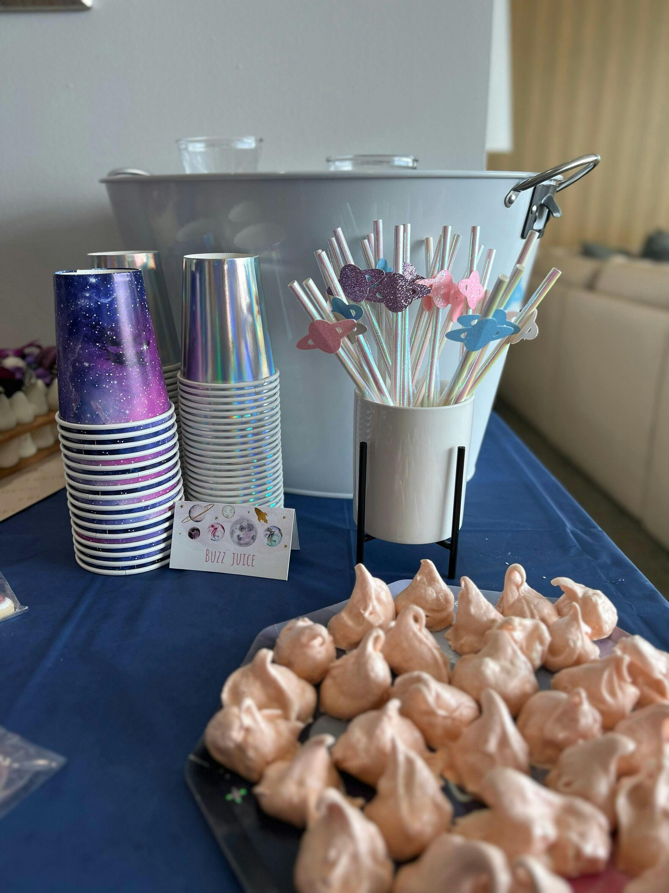 Blast off, it's party time! These fun galaxy party cups are ideal for serving beverages at your space party, and they also make great party favor containers too!