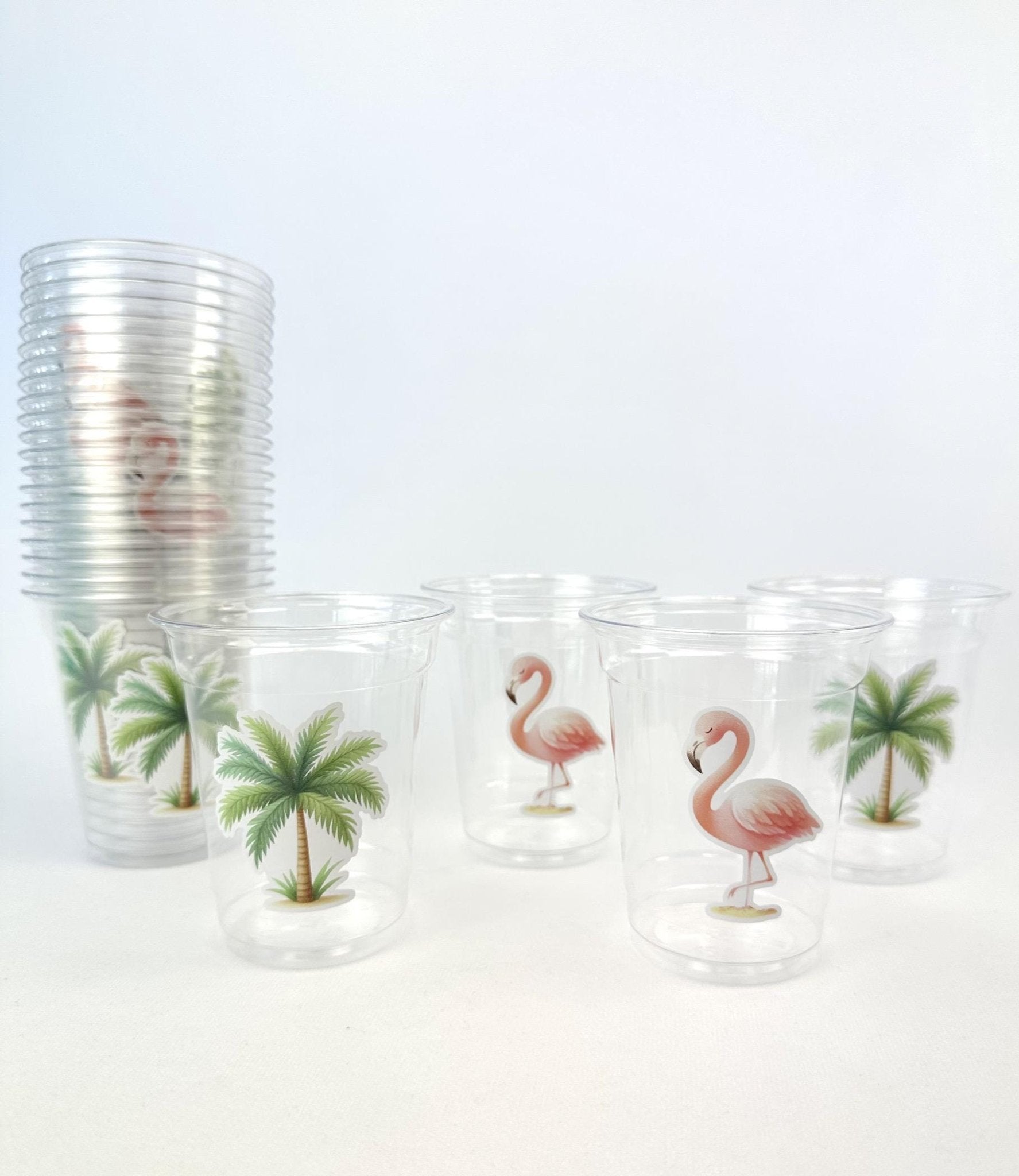 Add tropical flair to your summer celebration with these clear plastic cups featuring cute pink flamingos and palm trees! Perfect for a luau, pool party, or beach-themed birthday, these 12oz disposable cups bring a fun island vibe to your drinks table. Great for kids and adults, and versatile for baby showers, girls nights, or bachelorette bashes.