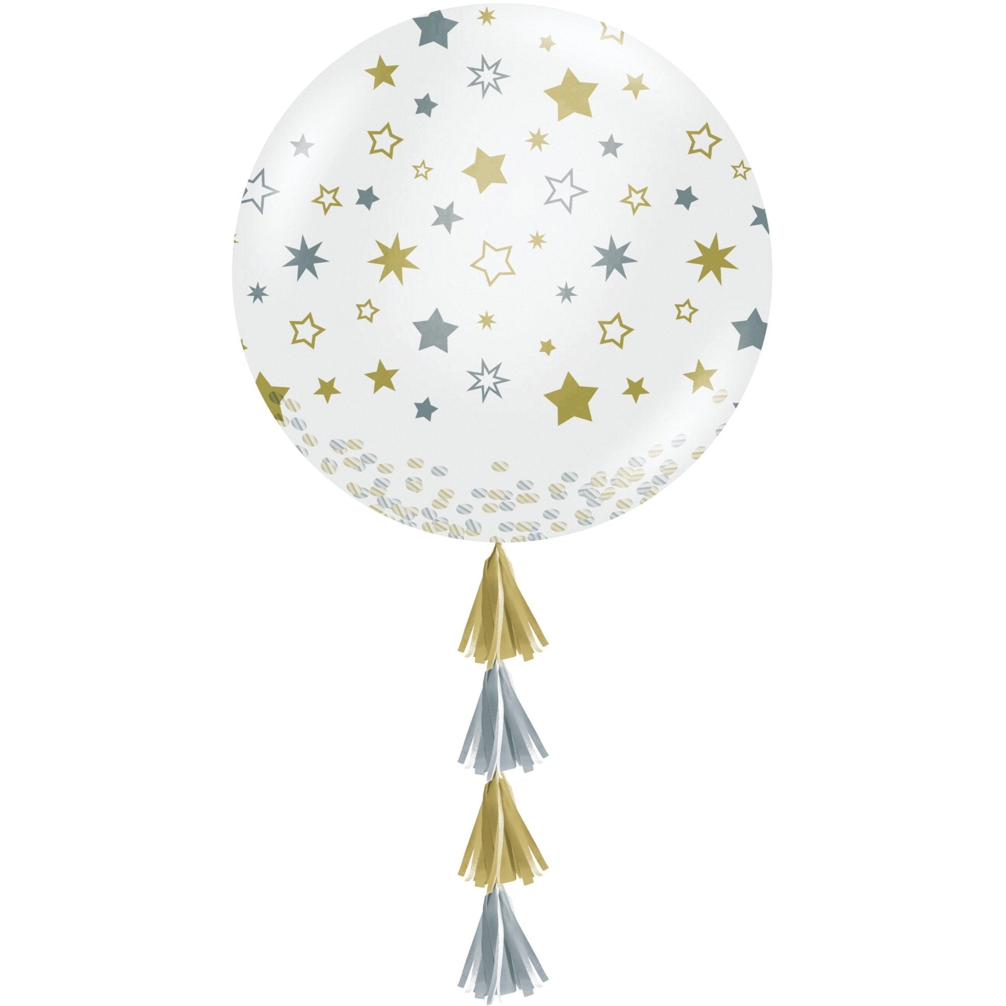 • 36" Gold & Silver Stars Latex Balloon with Tassels