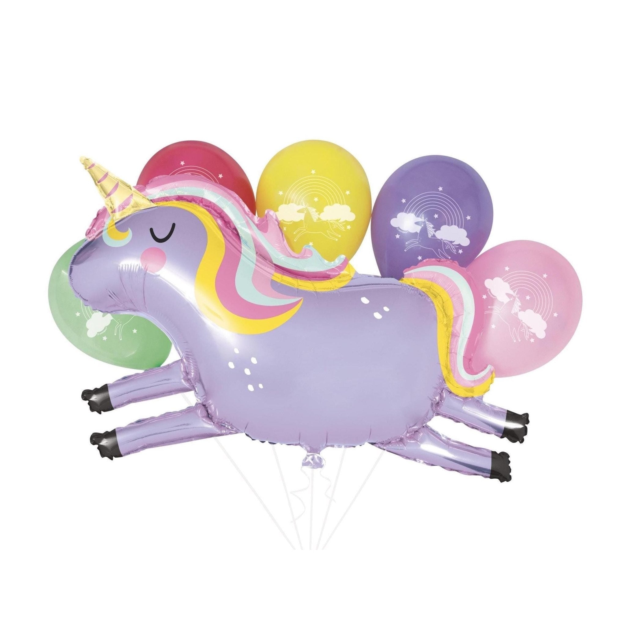 • Includes 1 large foil unicorn balloon (41.25") and 5 printed latex balloons (12")