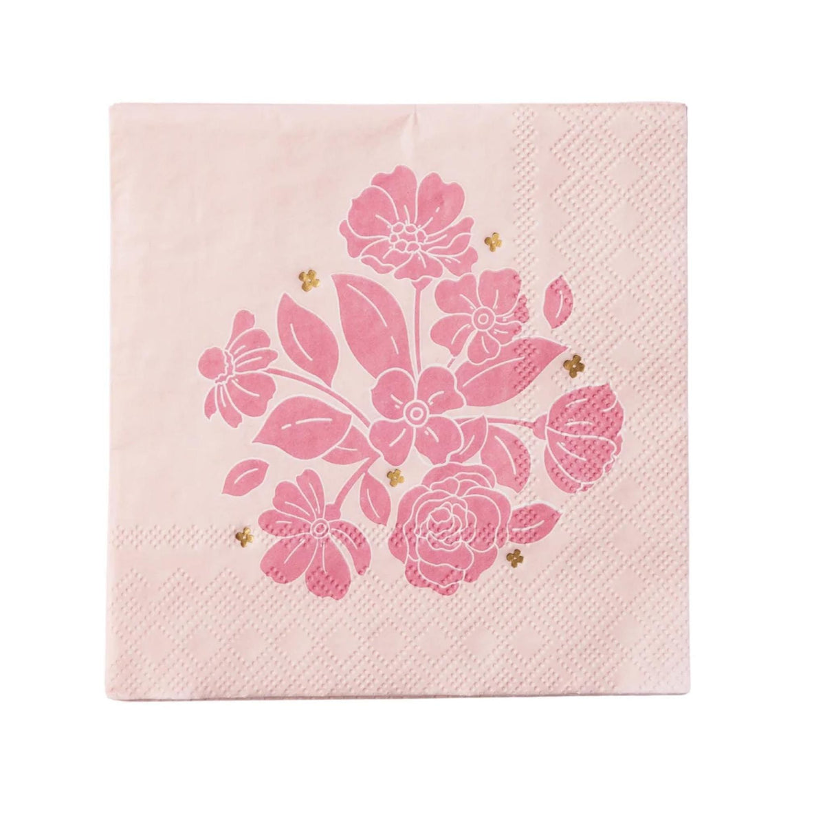 Add a touch of elegance to your table with these Pink Floral Party Napkins! Featuring a delicate pink flower bouquet in the center, these cocktail napkins bring a charming and romantic feel to any celebration. Subtle gold floral detailing adds a hint of shimmer, making them perfect for bridal showers, tea parties, birthdays, or spring gatherings. Soft yet durable, they effortlessly combine beauty and function. Pair them with matching floral tableware for a perfectly coordinated look!