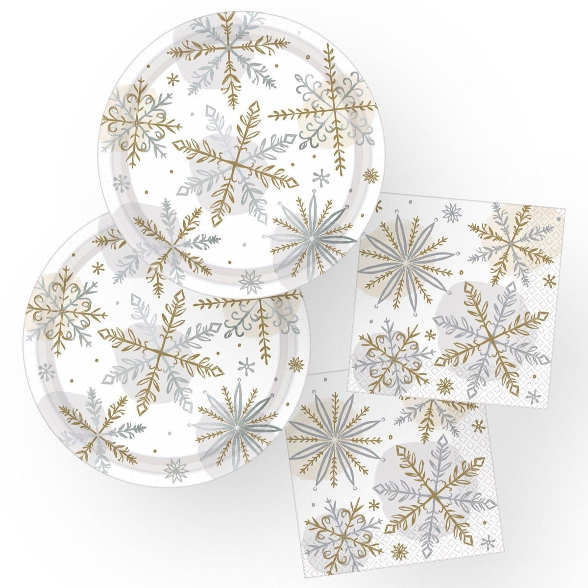 Serve up cake and sweets to your party guests using these cute silver and gold snowflake plates and napkins!