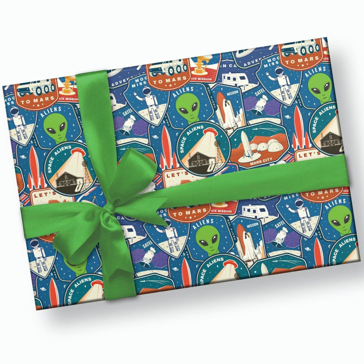 Great Alien wrapping paper! Cute for my 4 year old grandsons bday. Quality materials, thick paper, beautiful colors and cute design!