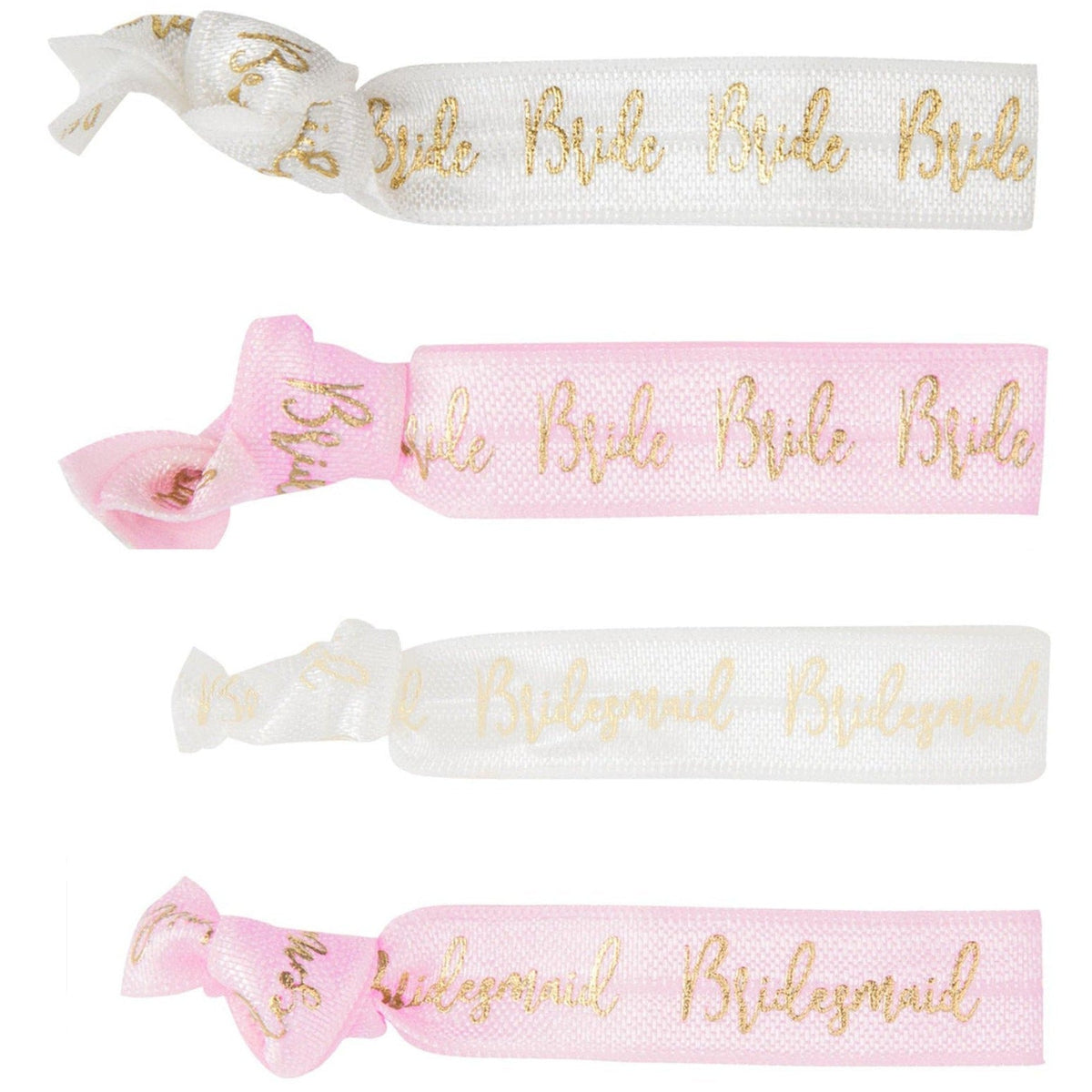 Fill your bridal shower favor bags with these adorable bride and bridesmaid themed party favor hair ties. They'll be a cherished addition to your bachelorette party bash, or bridal shower weekend getaway!
