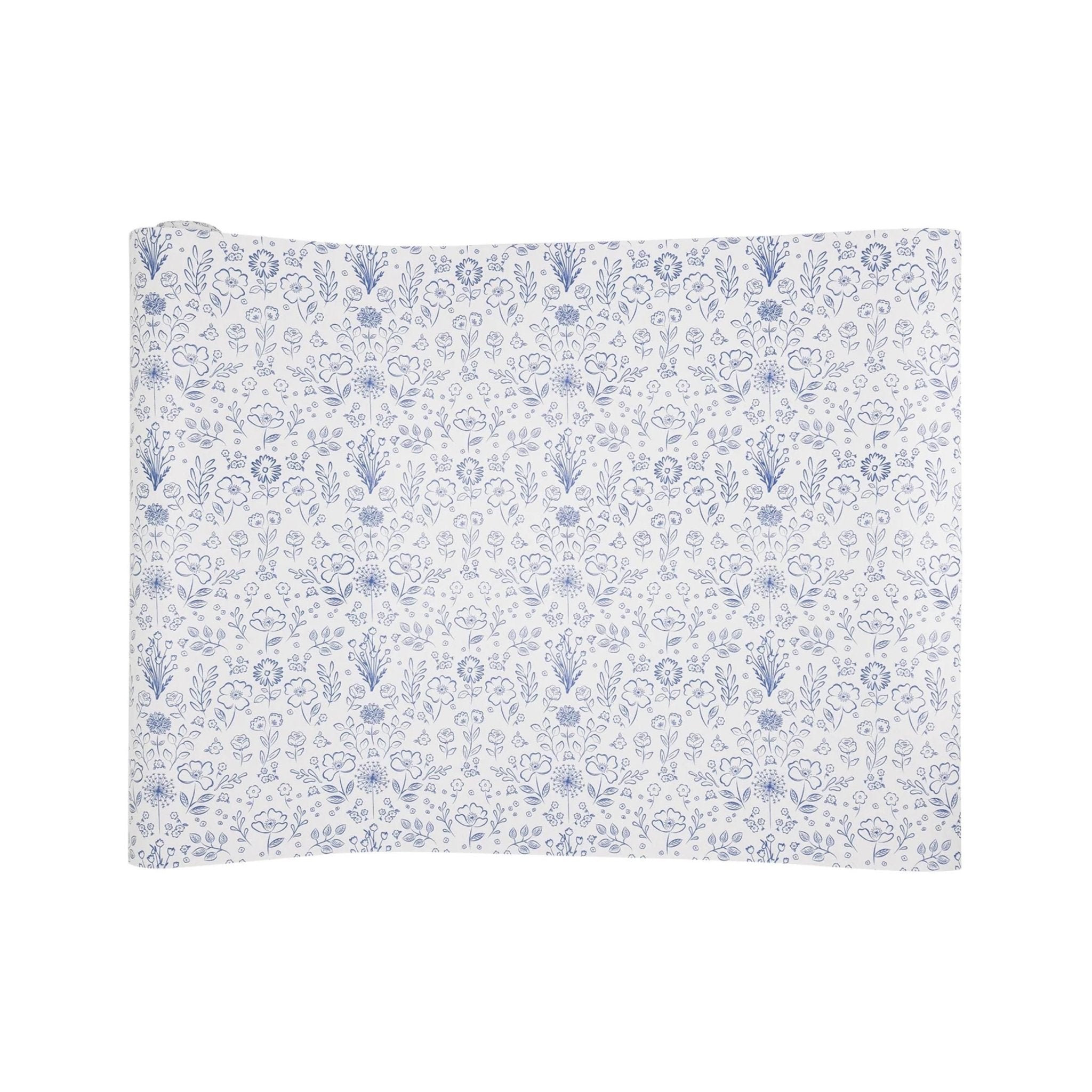 Create a timeless and elegant table setting with this Blue Floral Table Runner. Featuring a classic blue toile design adorned with intricate floral patterns, this paper table runner adds a touch of sophistication to any gathering. Perfect for weddings, tea parties, birthdays, baby and bridal showers, or formal dinners, it effortlessly enhances your decor with its vintage inspired charm. Made from high-quality paper, it combines practicality with style for easy cleanup. Transform your table into a work of art with this exquisite floral table runner!
