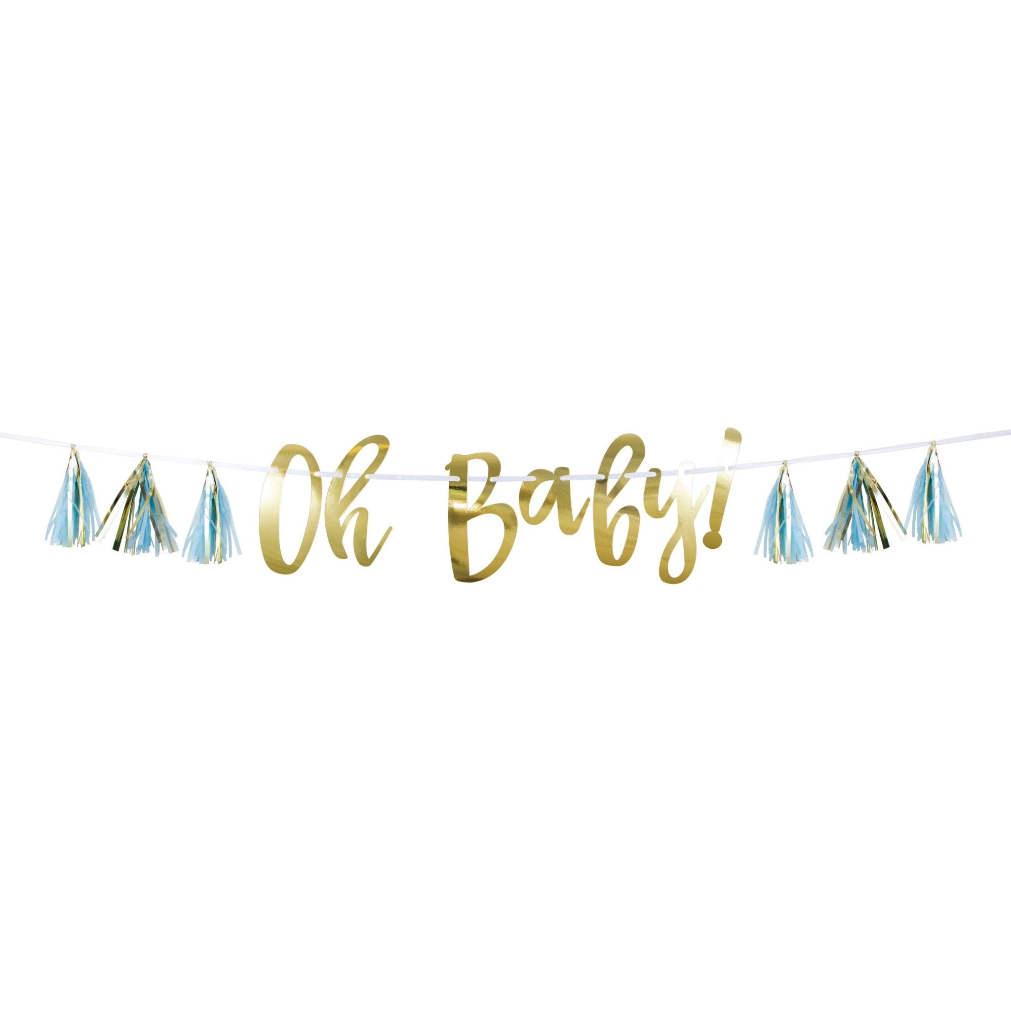 This "Oh Baby!" gold foil tassel banner will look lovely hanging on your mantle, wall, or front of your party table!