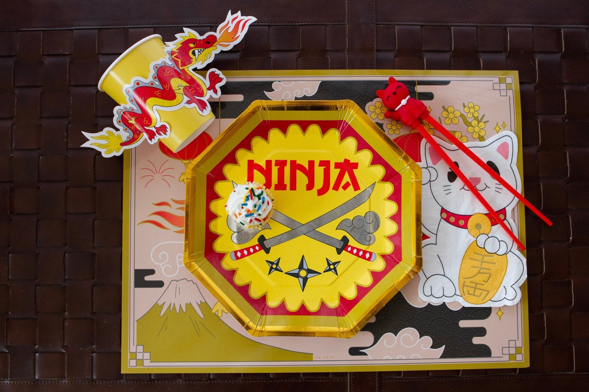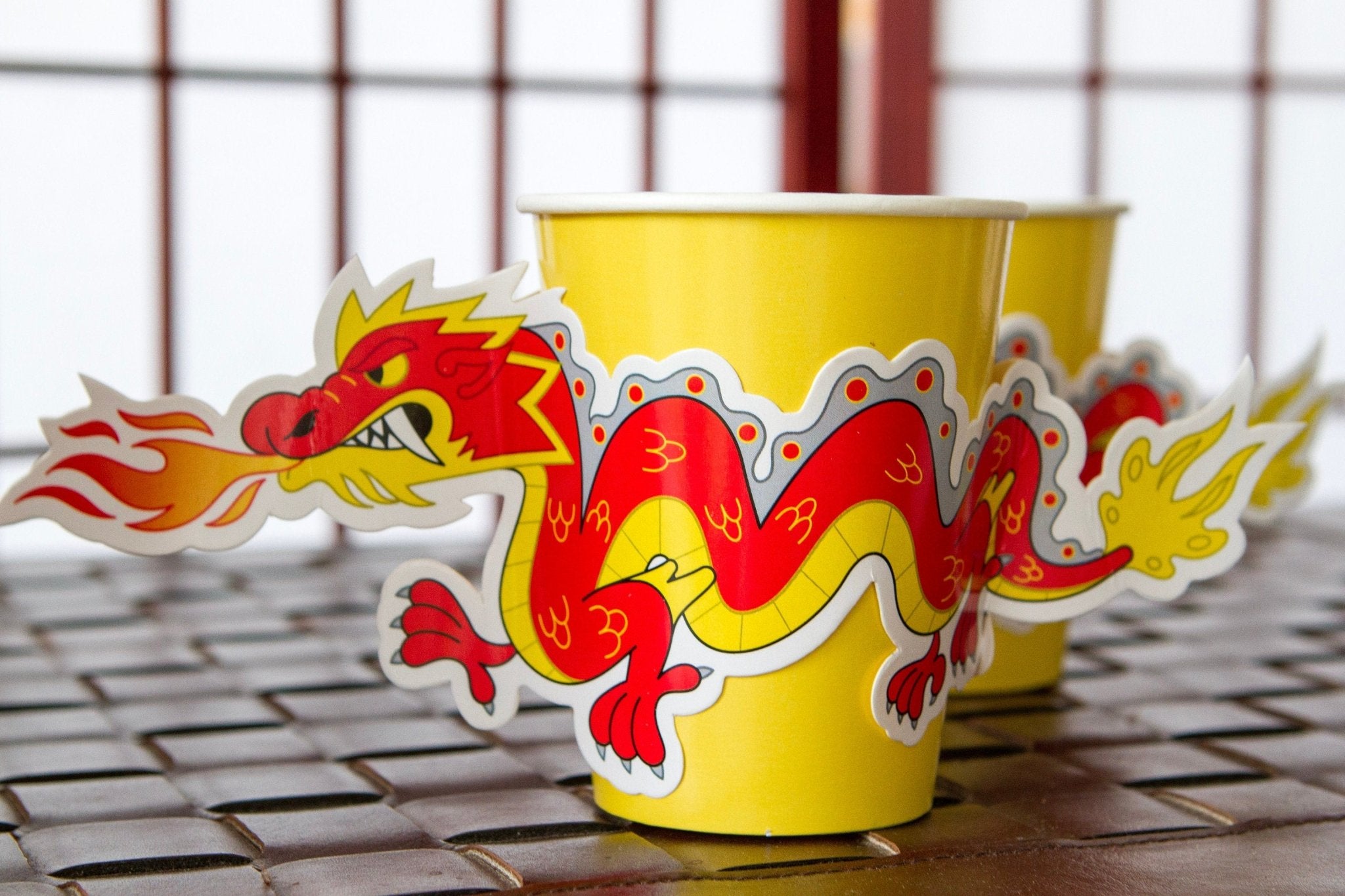 Ignite your ninja-themed celebration with our Dragon Party Cups, featuring a vibrant yellow paper cup paired with a striking dragon paper sleeve. The sleeve showcases a fierce red and yellow dragon breathing fire, adding an adventurous and dynamic element to your party decor. Perfect for serving drinks at your event, these cups not only keep beverages cool but also bring a fiery flair that complements the ninja theme. Ideal for birthdays, Chinese New Year, or any action-packed gathering, these paper drink cups are sure to impress your little warriors!