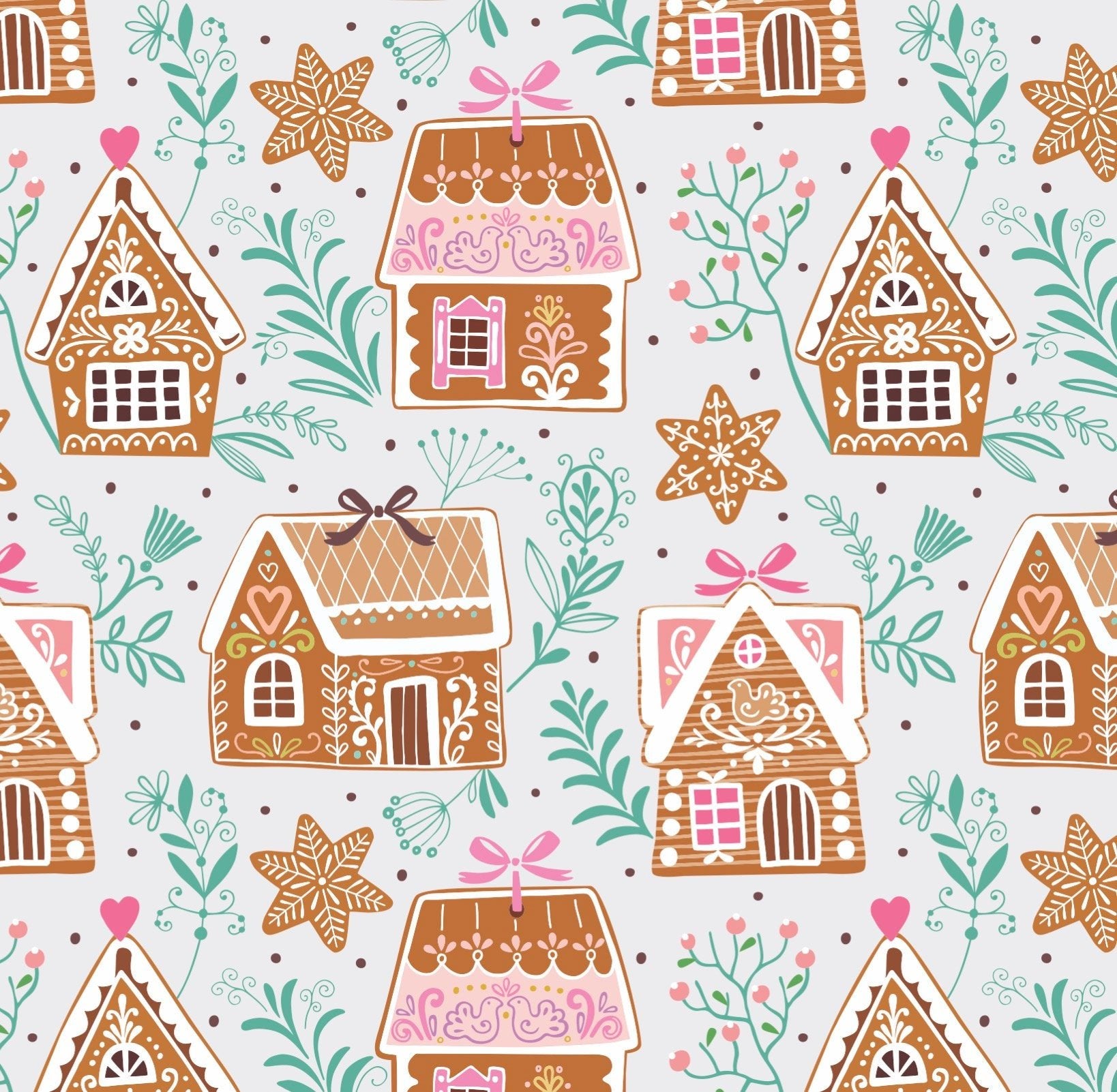 Wrap your gifts in sugar and spice with this cozy-chic paper featuring brown gingerbread houses, soft pink accents, and delicate floral touches—perfect for a warm, whimsical holiday feel. Ideal for giving Christmas and seasonal gifts to a grandma, mom, teacher, daughter, sister, coworker and friend.