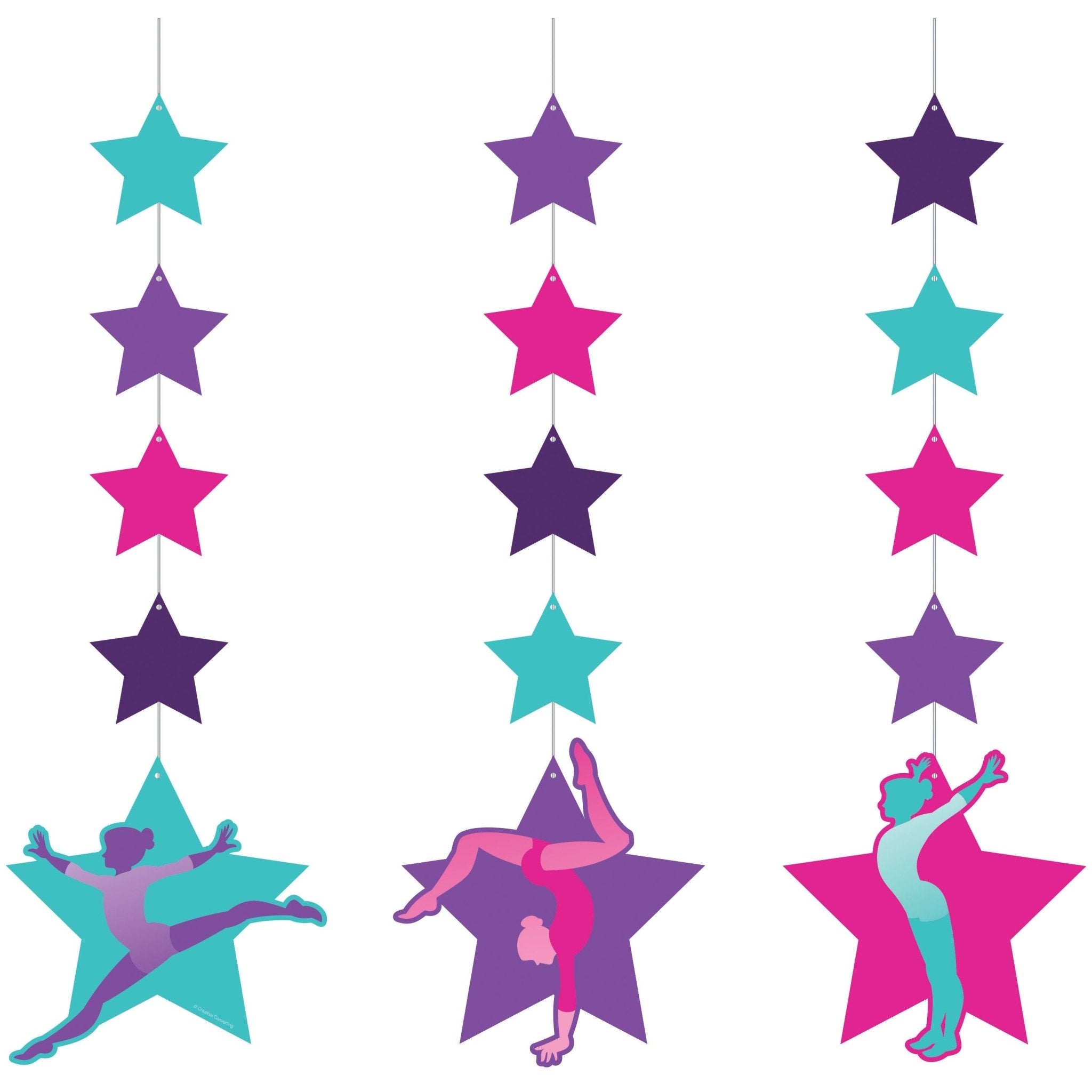 Add a touch of flair to your tumbling-themed event with these Gymnastics Party Danglers! Each set features multiple stars and three dynamic gymnasts in vibrant purple, pink, and teal colors, all striking elegant poses that capture the spirit of gymnastics. Perfect for hanging from ceilings, doorways, or party tents, these decorations bring an energetic and festive atmosphere to your celebration. Ideal for birthdays, competitions, or any gymnastics-inspired gathering, they’re sure to delight and impress your guests.