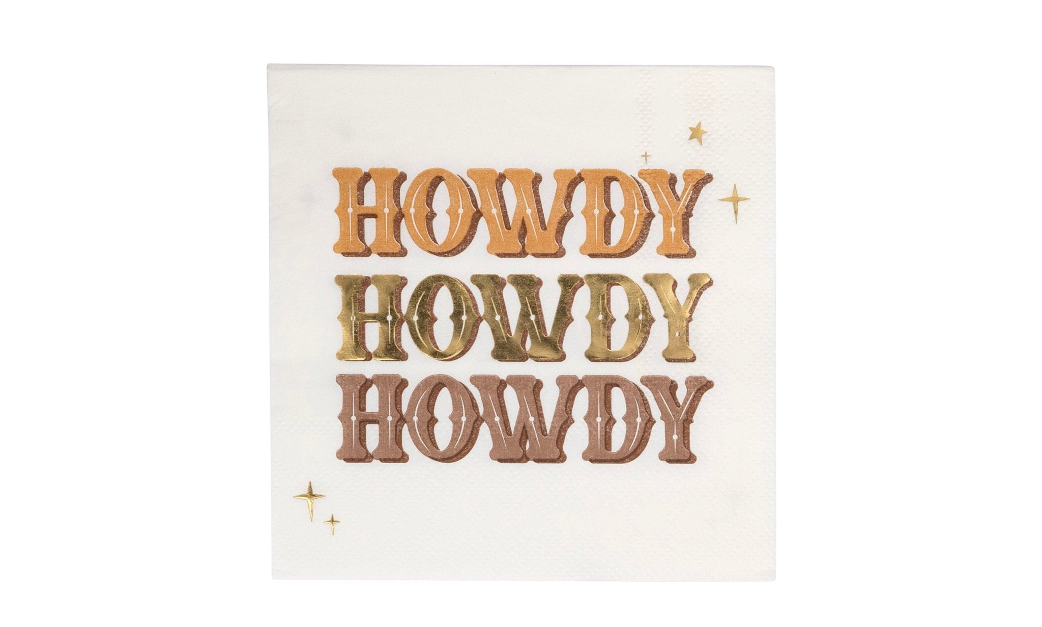 Add a fun and welcoming touch to your celebration with our "Howdy" Party Napkins! Perfect for any cowboy or cowgirl-themed party, these lively napkins feature the cheerful greeting "Howdy Howdy Howdy" in bold brown & gold foil letters. Whether it’s a Wild West Cowboy Birthday or a Disco Cowgirl Bachelorette, these napkins will bring a playful and festive vibe to your event.