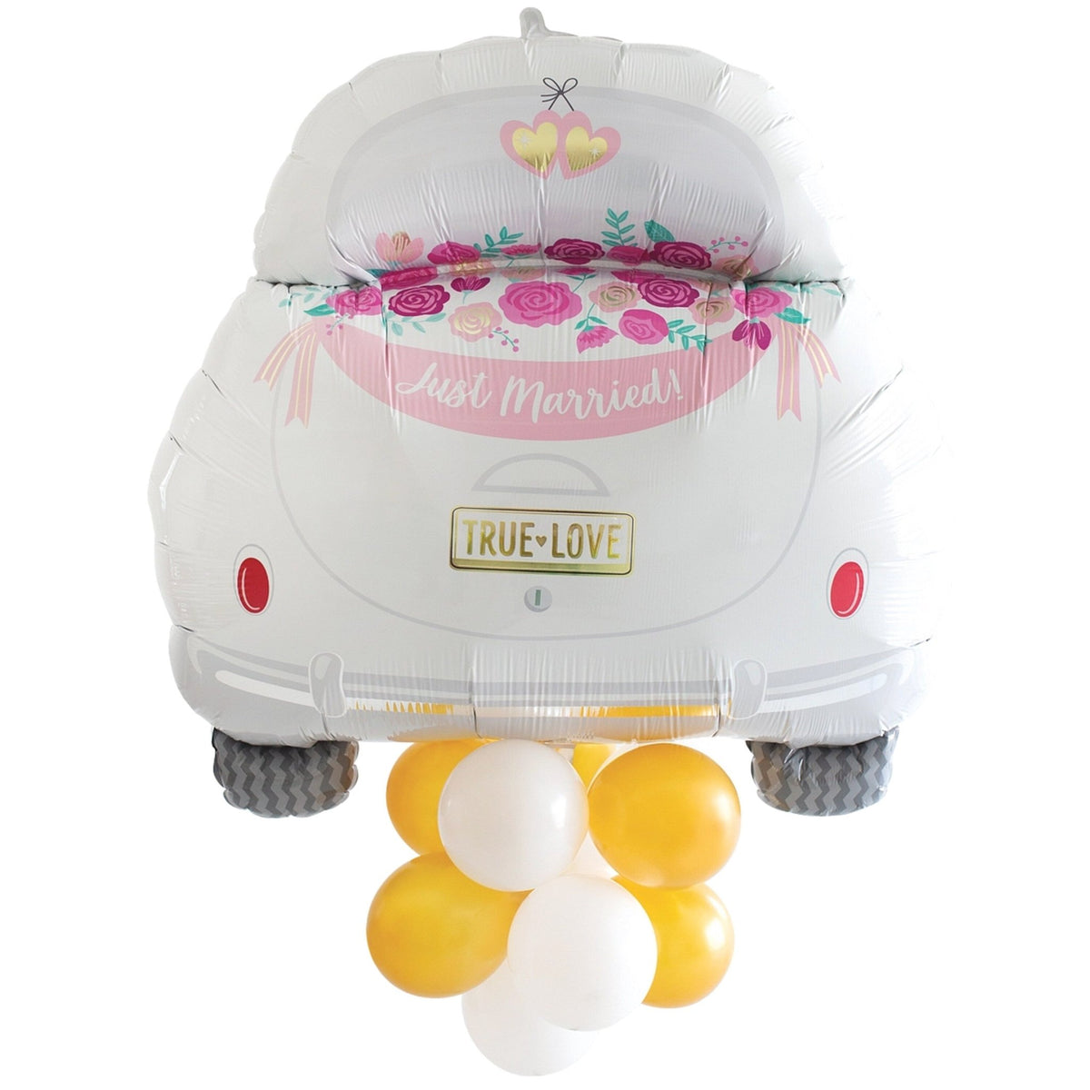 Make your wedding day even more special with this charming just married balloon bouquet! Made from high-quality materials, featuring a pretty design with a cute car-shaped foil balloon and latex balloons in coordinating colors, this balloon bouquet is the perfect addition to any wedding decor. Whether used as a centerpiece or hung up as a decoration, this bouquet is sure to create a festive and celebratory atmosphere for your special day.