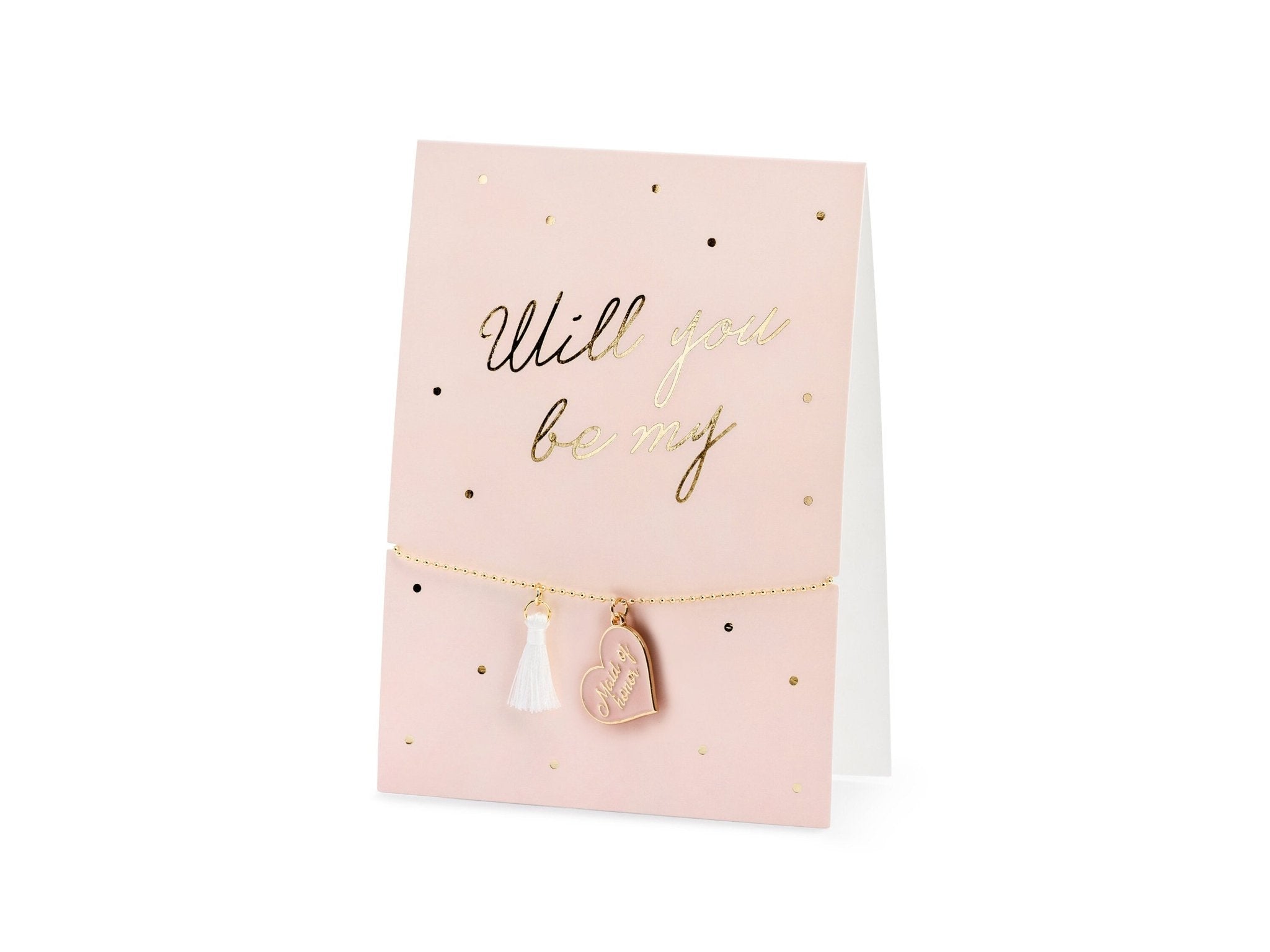 "Will you be my Maid of Honor?" Make this special moment unforgettable with our Maid of Honor Proposal set. The set includes a beautiful pink card and envelope with gold foil accents and a Maid of Honor bracelet. Show your best friend how much they mean to you and invite them to stand by your side on your big day. This thoughtful gesture is the perfect way to start your journey to 'I do.'
