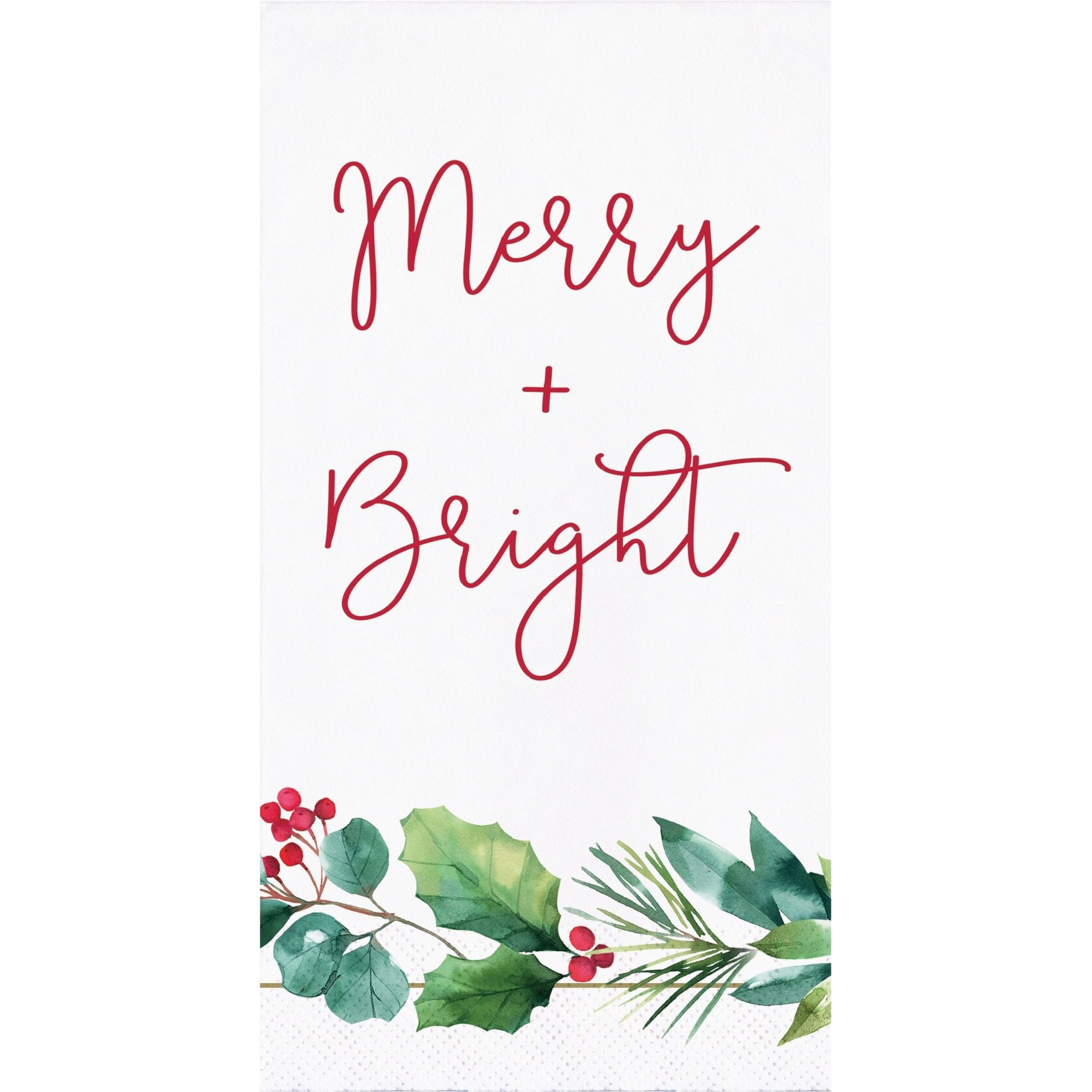 Enhance the holiday spirit with our festive Christmas Merry + Bright Paper Napkins, designed to radiate the warmth and happiness of the season! Perfect for family gatherings, holiday parties, and festive dinners, these high-quality guest towel napkins feature cheerful designs that bring joy to your table setting. Made from soft, durable materials, they are both stylish and practical, adding a touch of elegance to your holiday decor. Make your Christmas celebrations truly special with these charming napkins that capture the essence of the holiday season.
