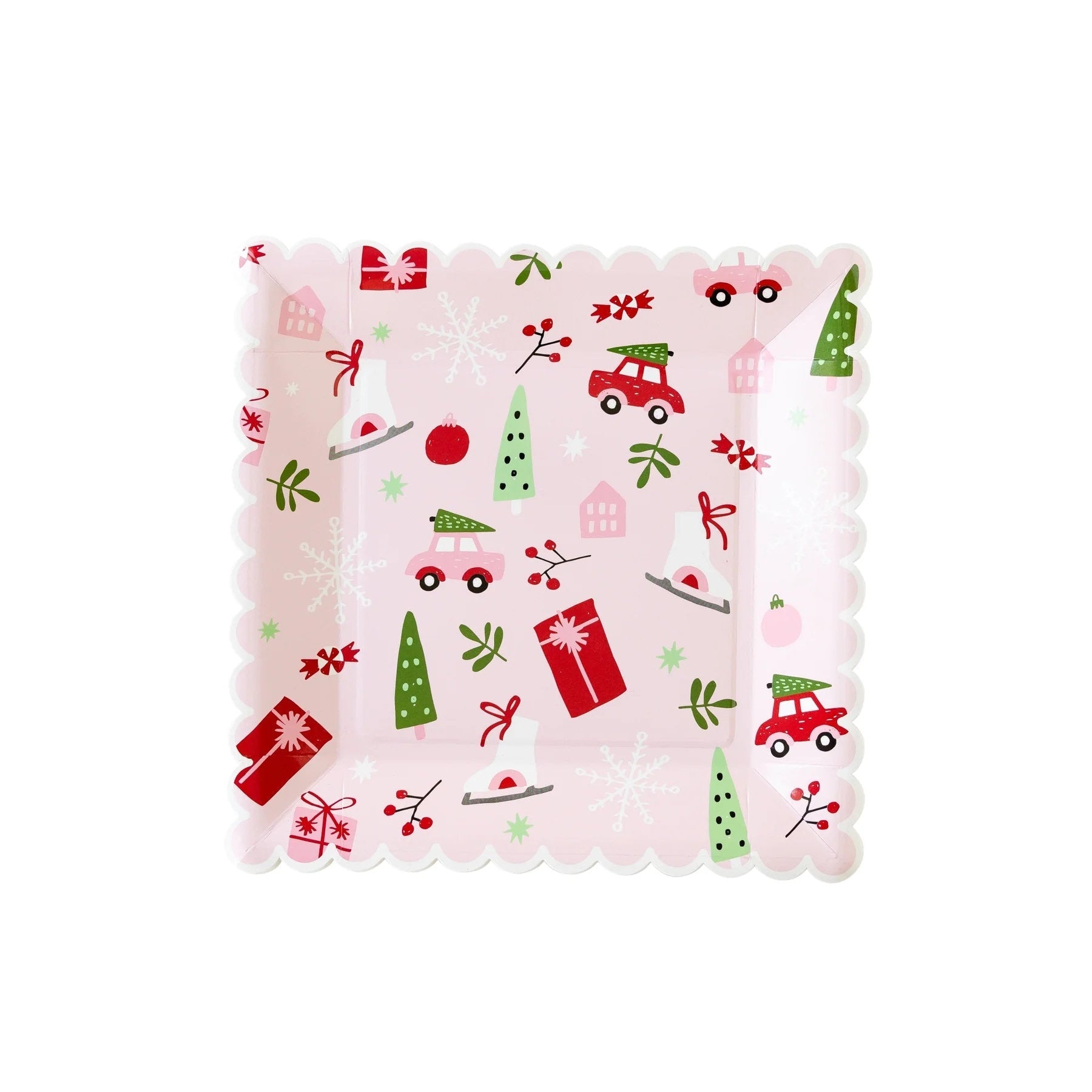 Add a touch of elegance to your Christmas festivities with our charming pink and red holiday plates. Designed with scalloped edges, these dinner-sized plates are perfect for serving both holiday feasts and delightful treats. Their stylish aesthetic ensures your winter gatherings are memorable, beautifully blending seasonal spirit with chic design.