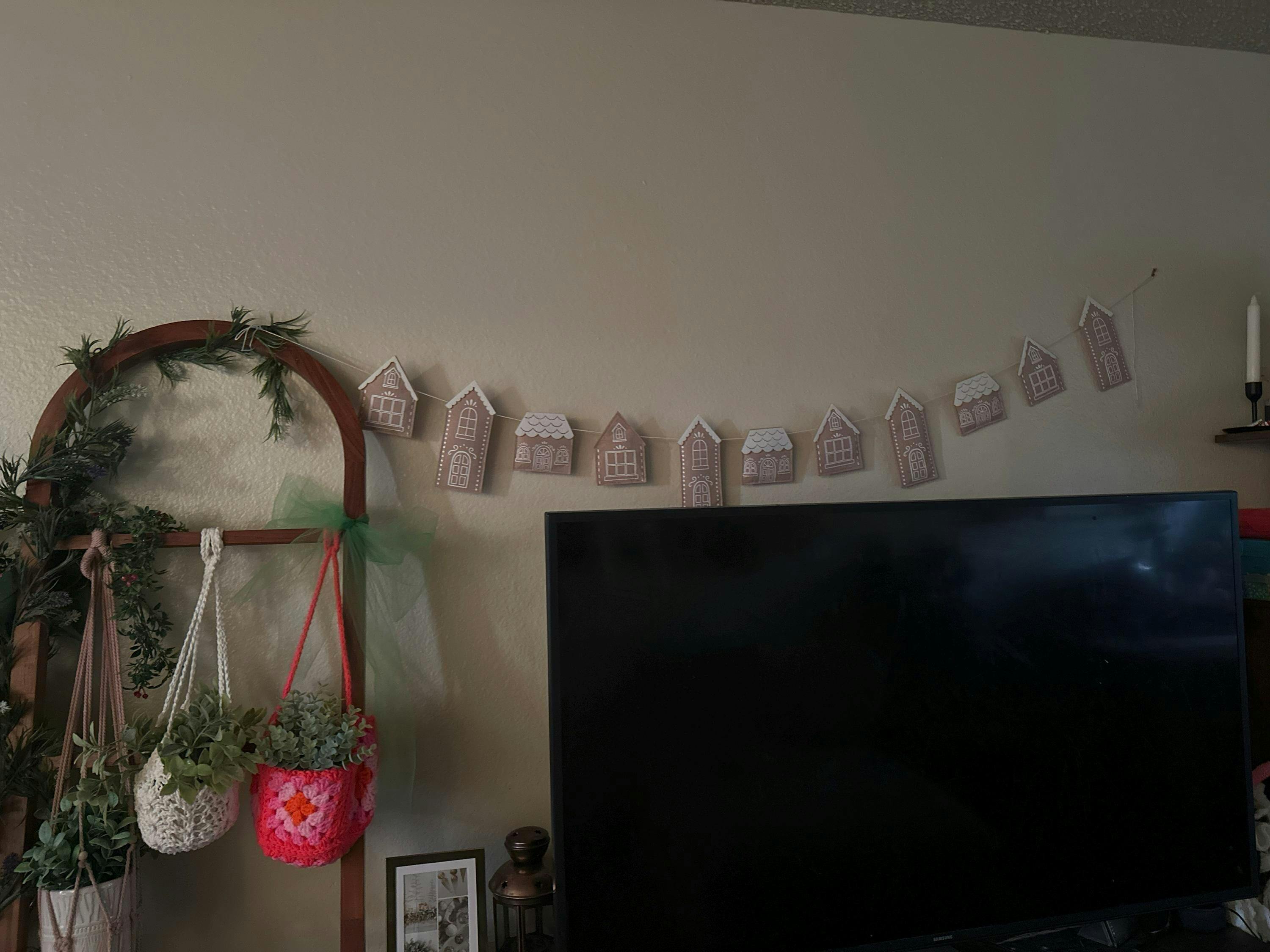 Lovely garland for grandson’s first gingerbread house construction party decor. Matched tray and many accessories so a nice coordinated look. Shipped quickly and a very positive experience. Happy holiday fun party!