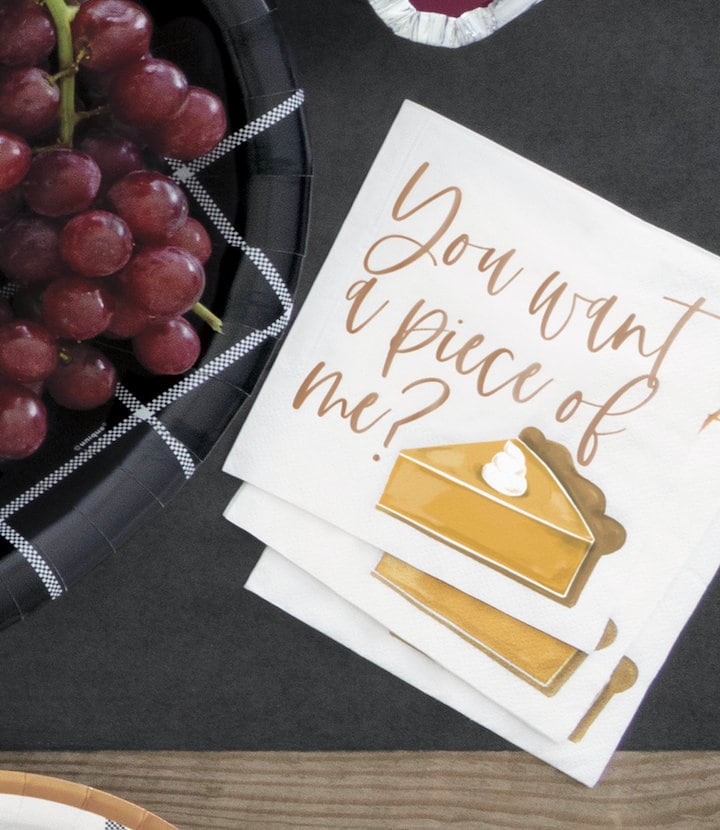 Bring a playful twist to your autumn gatherings with our Pumpkin Pie Party Napkins, featuring a slice of pie and the cheeky phrase, 'You want a piece of me?' These paper cocktail napkins are just right for Thanksgiving, Friendsgiving, or any fall festivity, adding a cozy seasonal charm to your table. Perfect for serving alongside desserts or for handy cleanup after meals, these napkins are both functional and festive. Celebrate fall in style with these delightful napkins that capture the warmth and spirit of the season!
